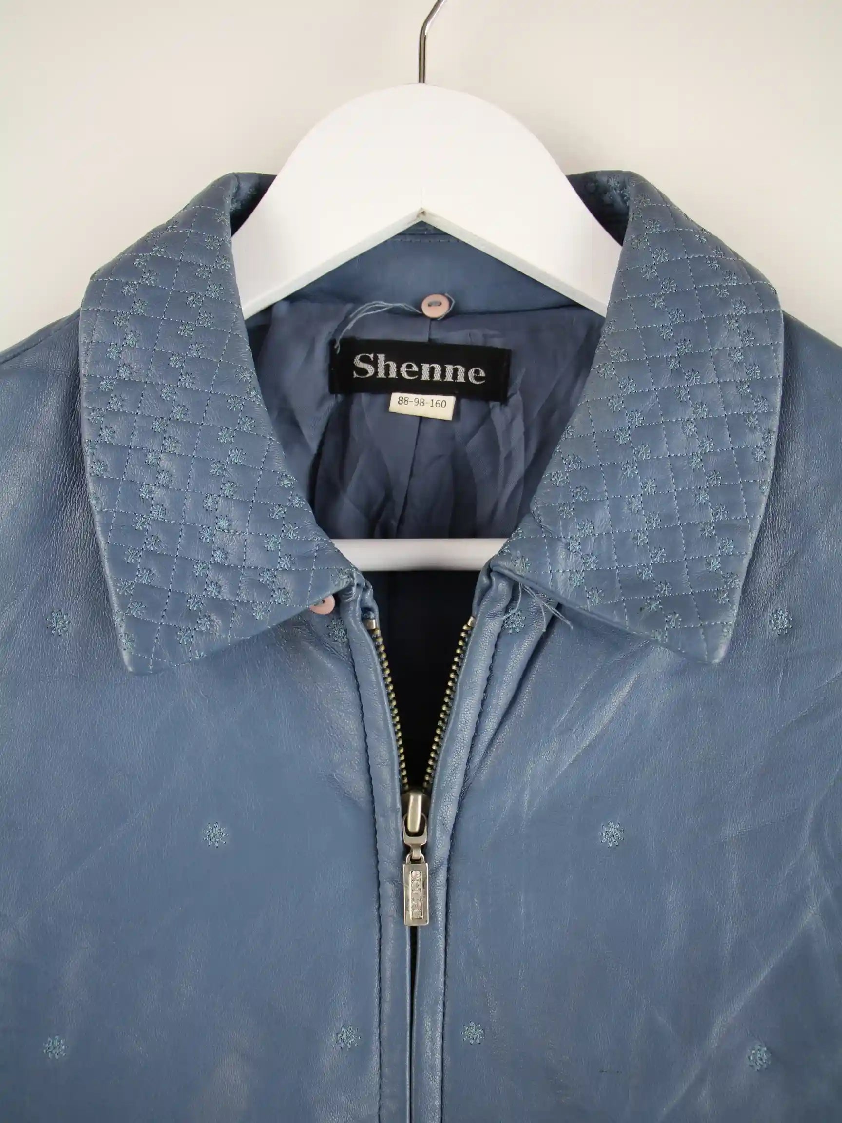 Vintage Damen 00s Leder Jacke Blau S