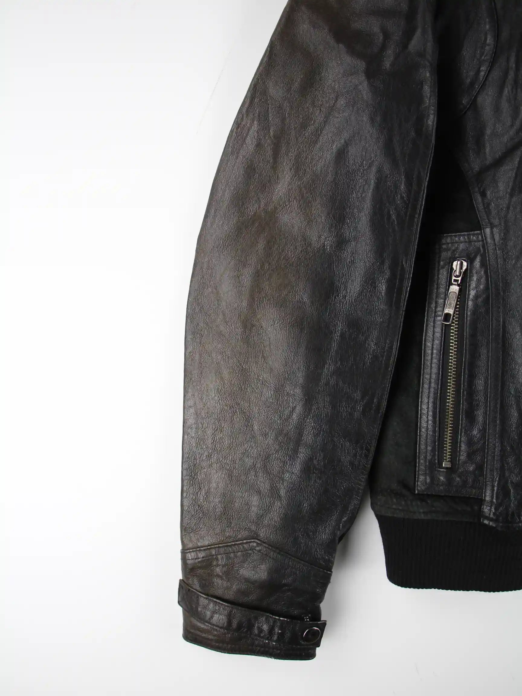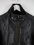 Schwarze Vintage Jacke aus den 90'ern in Größe L. Sie ist aus Leder produziert. Den Zustand würden wir als 'In Ordnung' bezeichnen (vergl. Bilder).