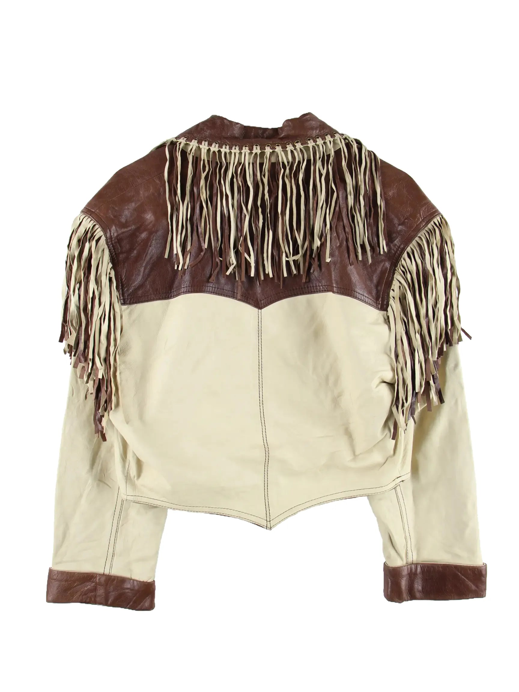 Vintage Damen 90s Western Leder Jacke Beige M