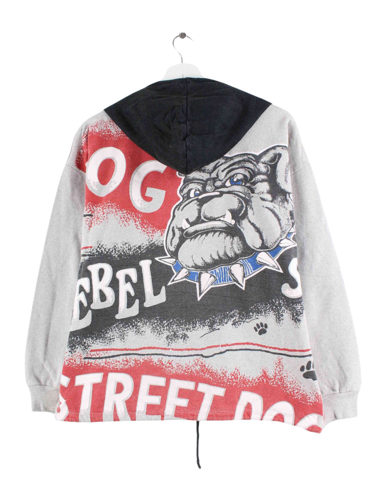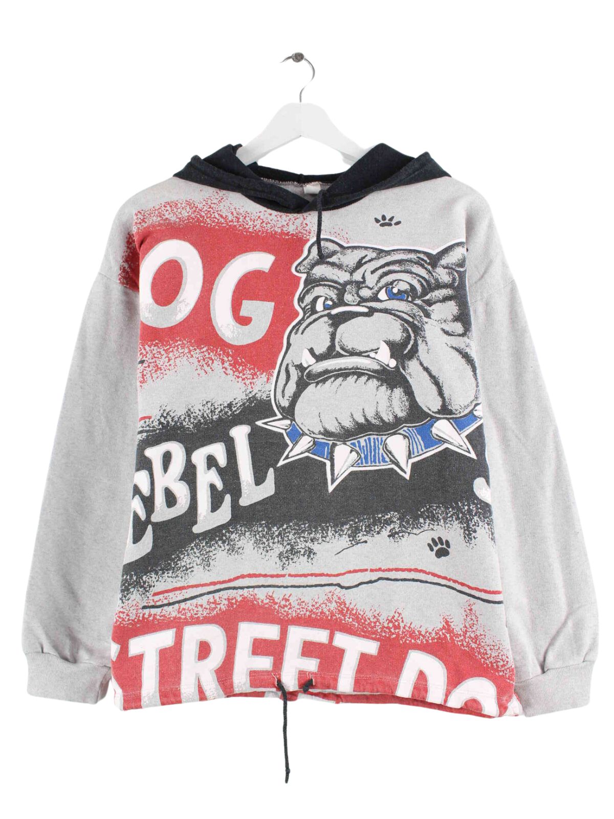 Vintage Hoodie in Größe S. Er ist aus einer Baumwollmischung gemacht und in Grau im Angebot. Mit schönem Bulldog Print.