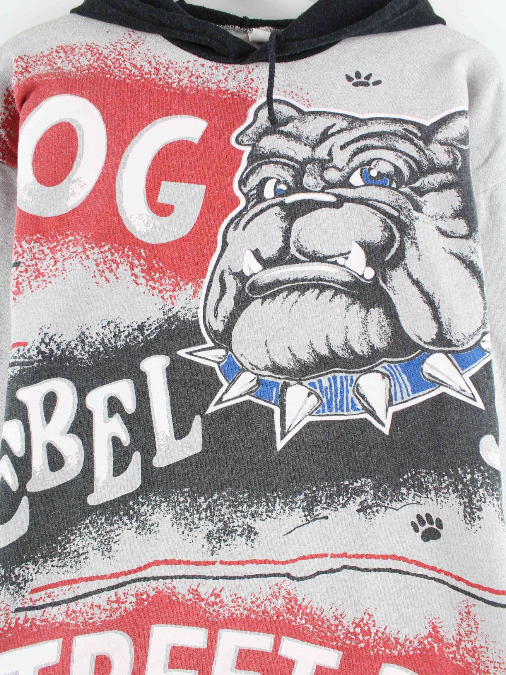 Vintage Damen Bulldog Print Hoodie Grau S