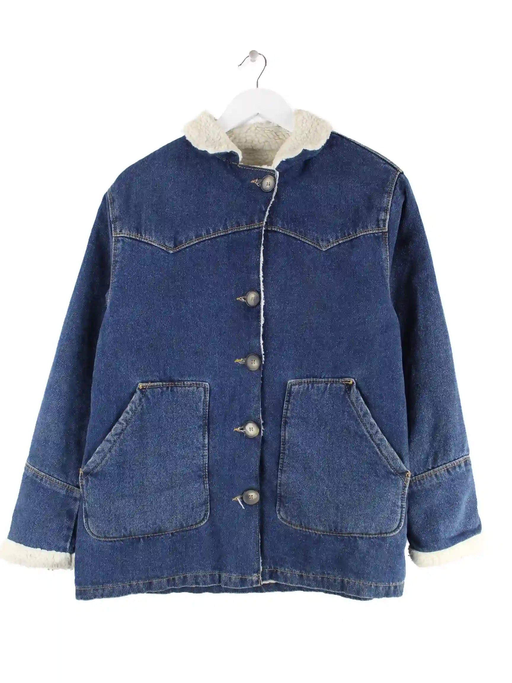 Vintage Damen Sherpa Jeans Jacke Blau S