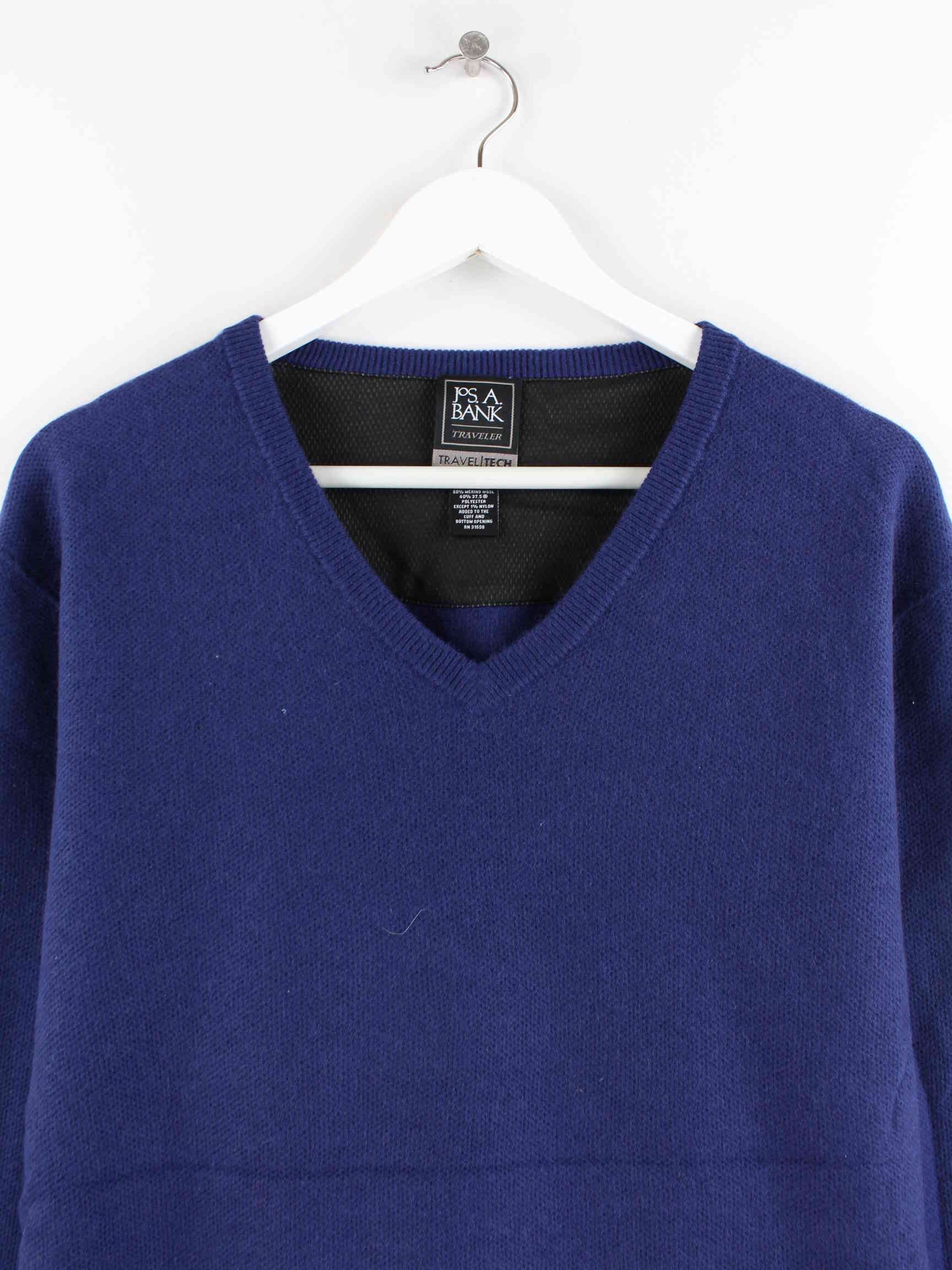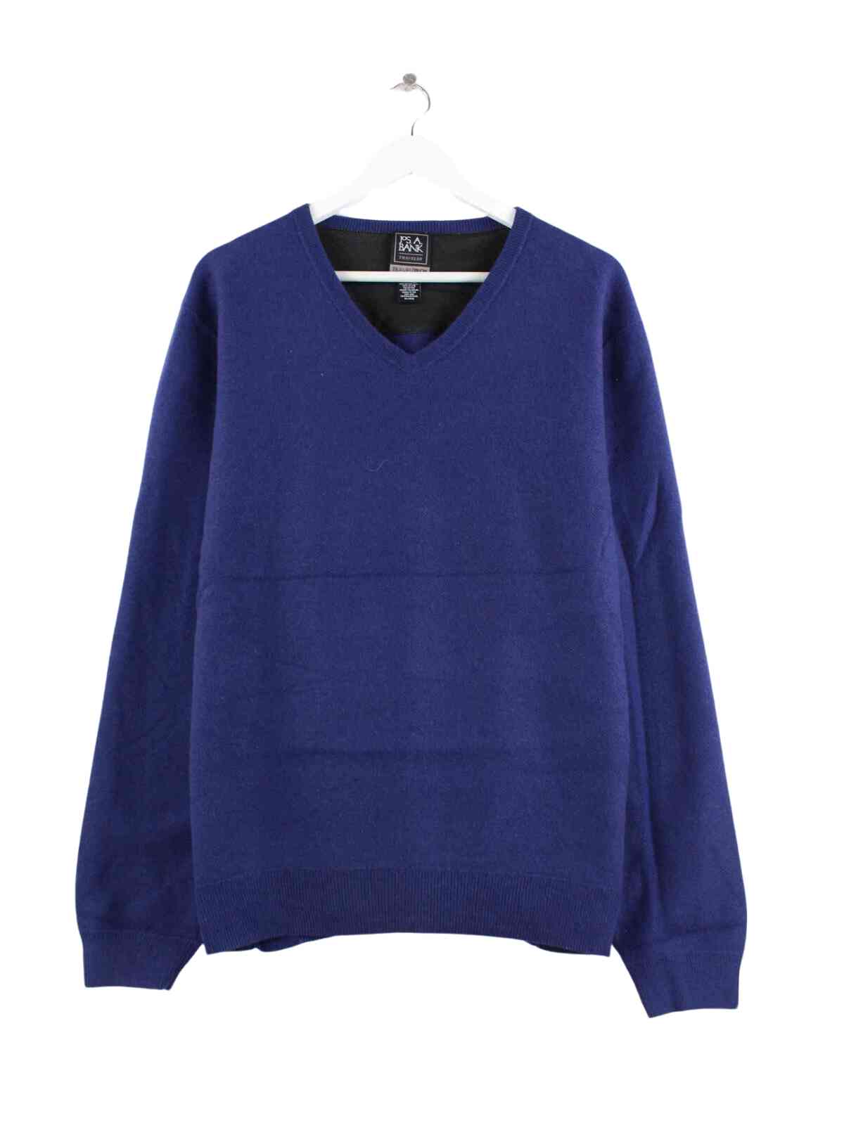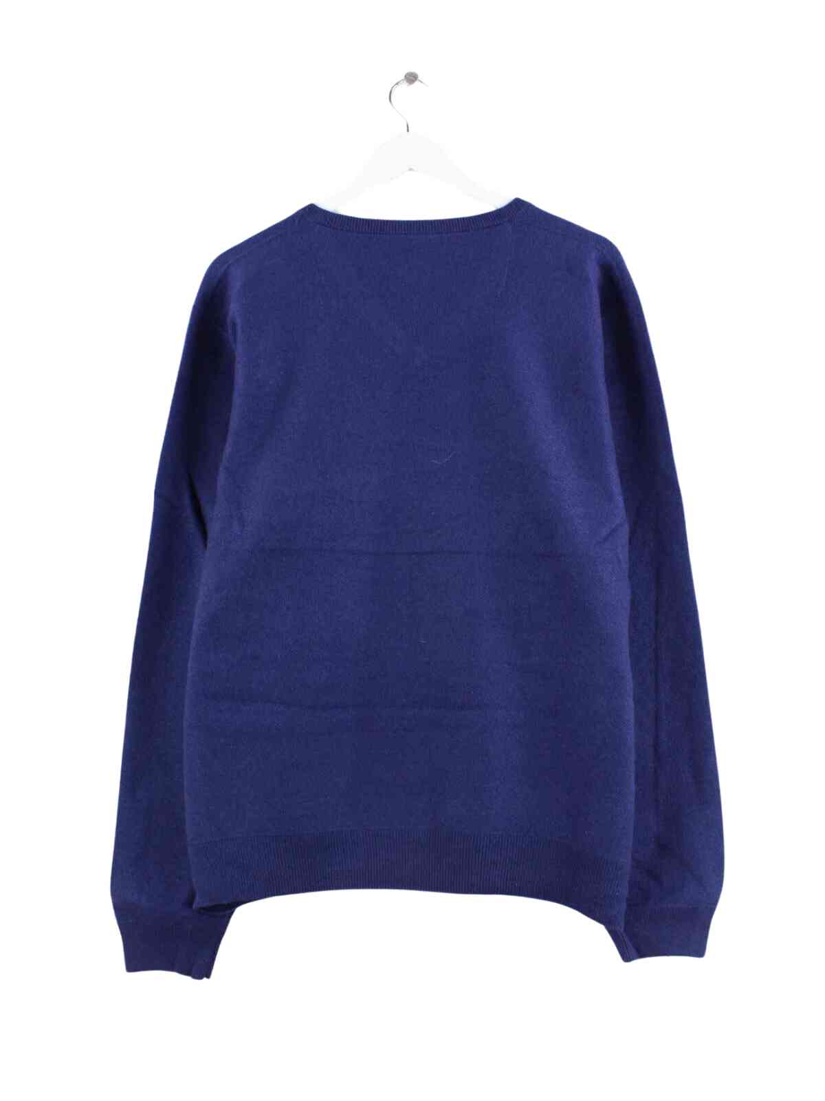 Vintage Damen V-Neck Woll Pullover Blau XXL