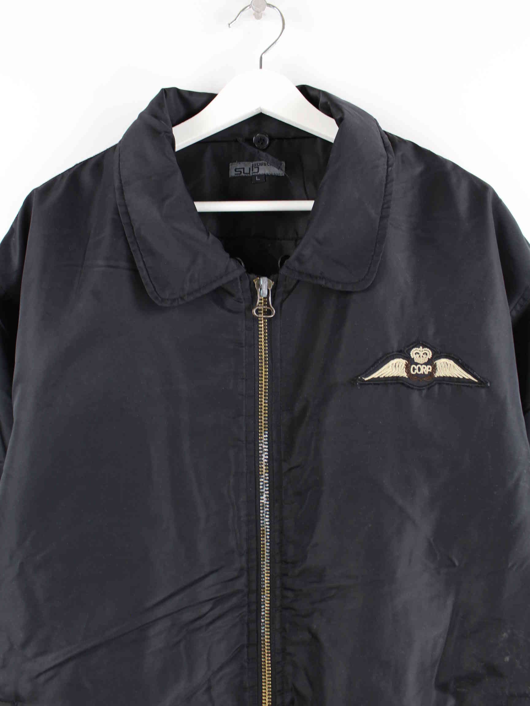 Vintage Embroidered Bomber Jacke Schwarz XXL
