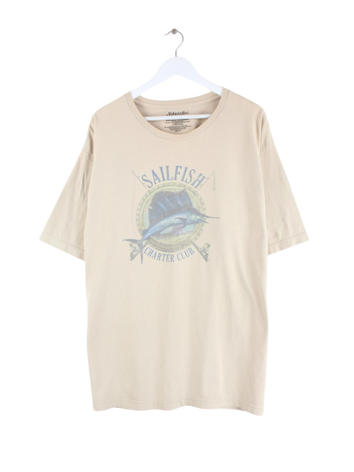 Vintage T-Shirt in Größe XXL von St. Johns Bay. Es ist aus Baumwolle hergestellt und in Braun im Angebot. Mit seltenem Fisher Print.