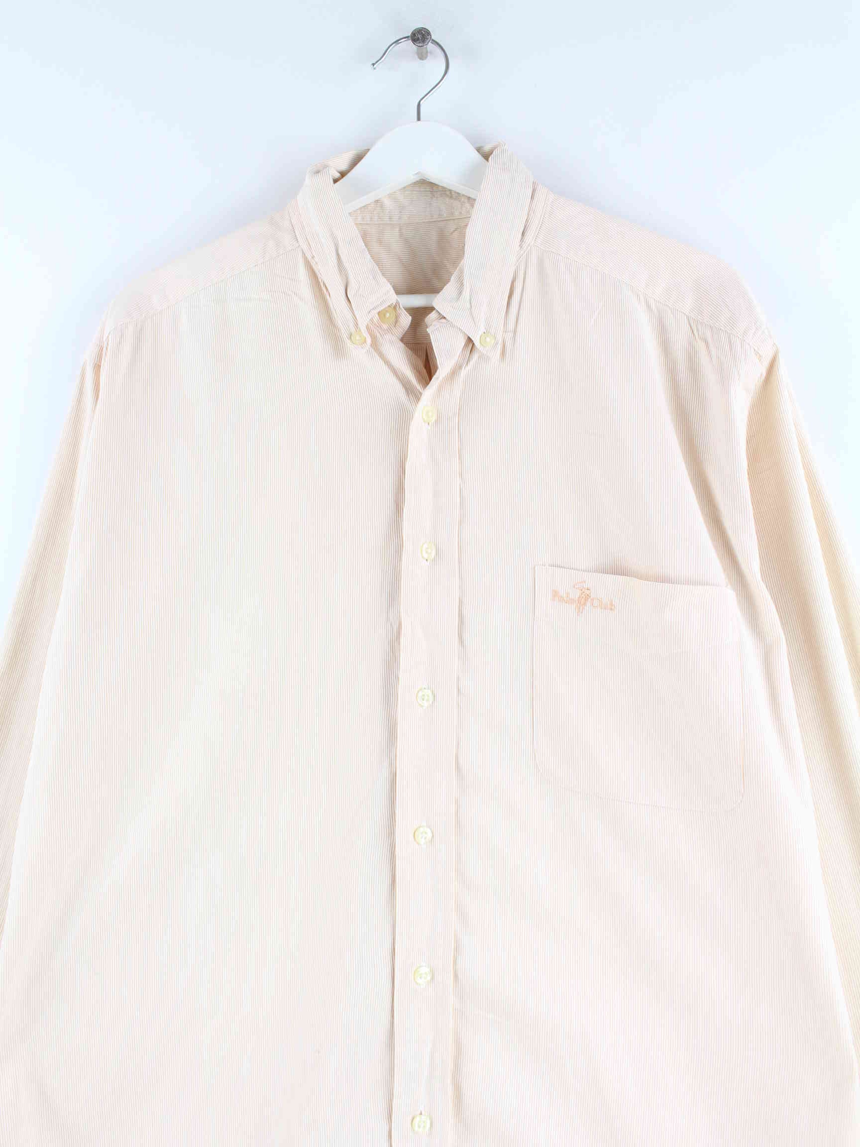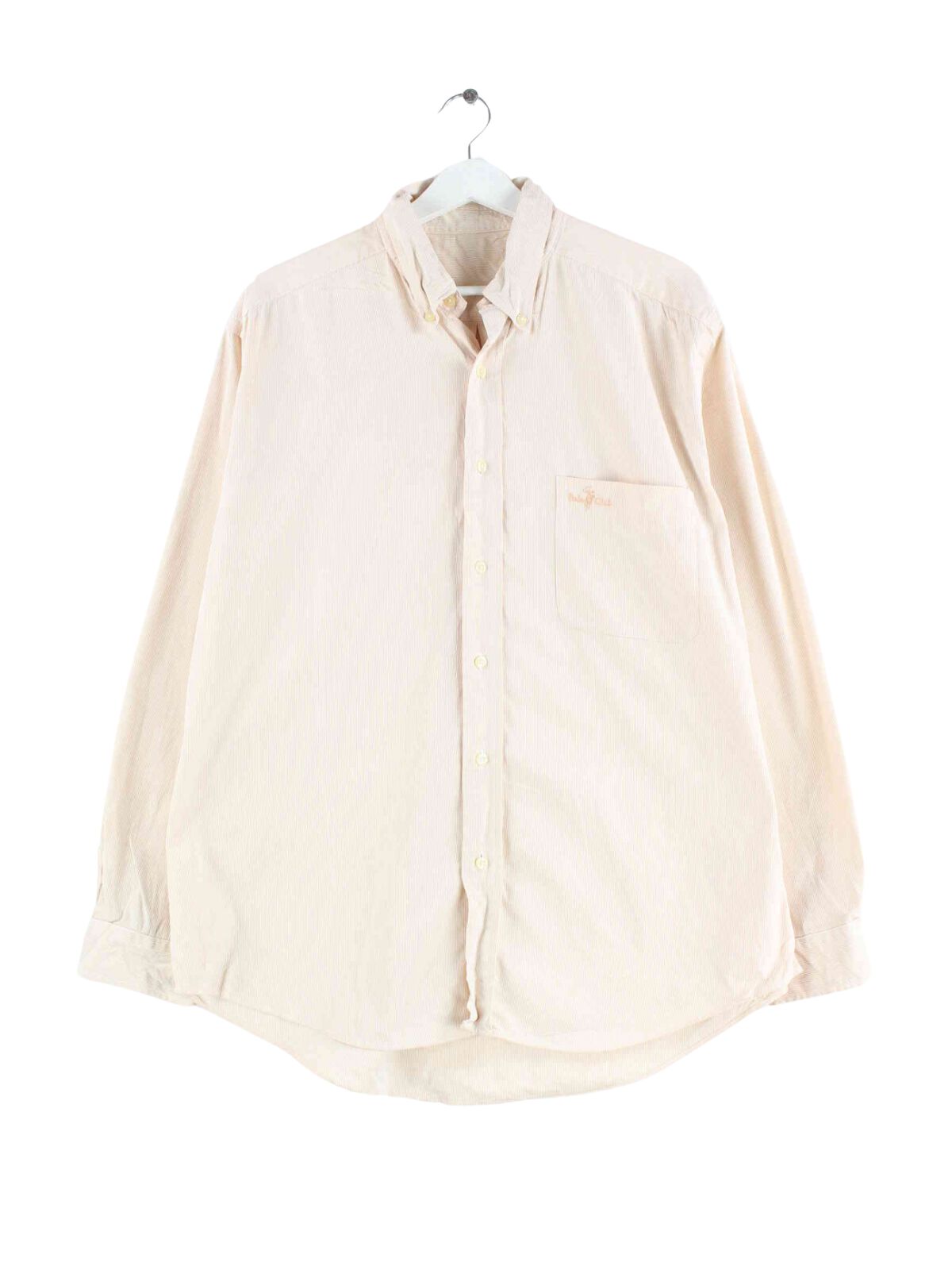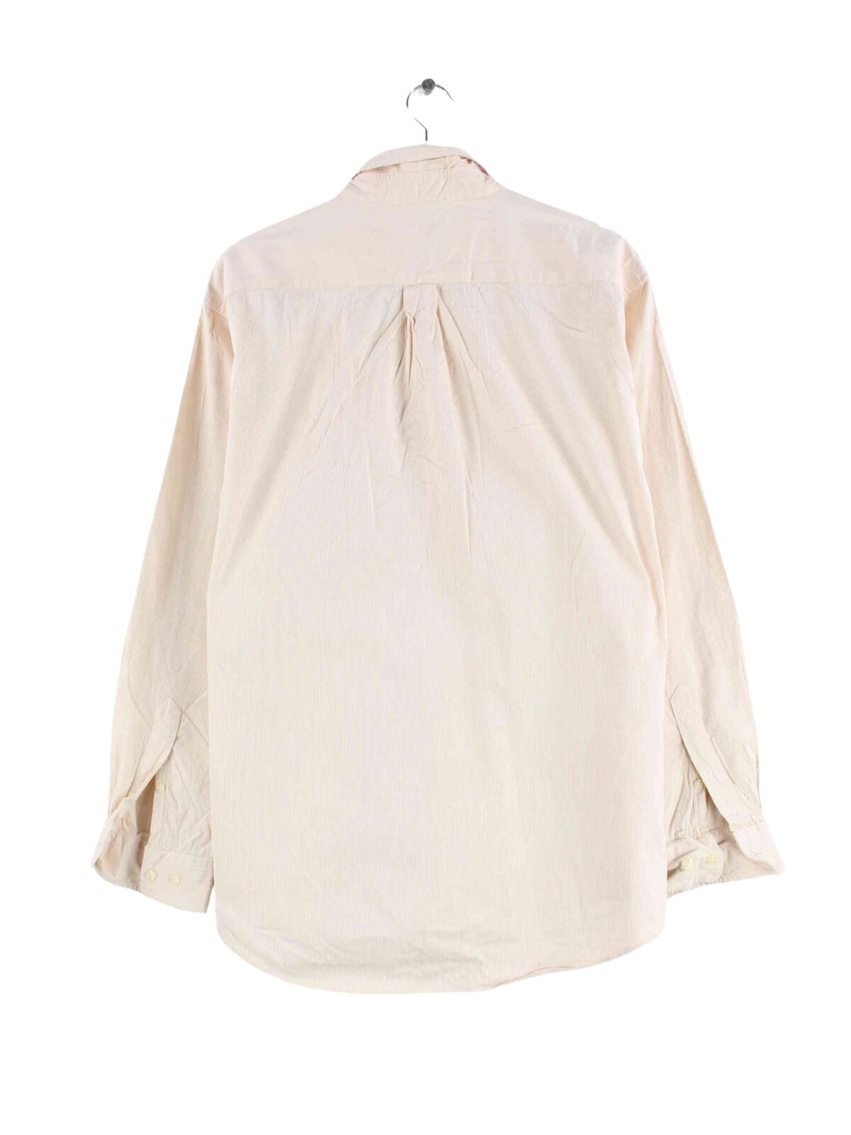 Vintage Hemd in Größe L. Es ist aus einer Baumwollmischung angefertigt und in Beige zu haben.