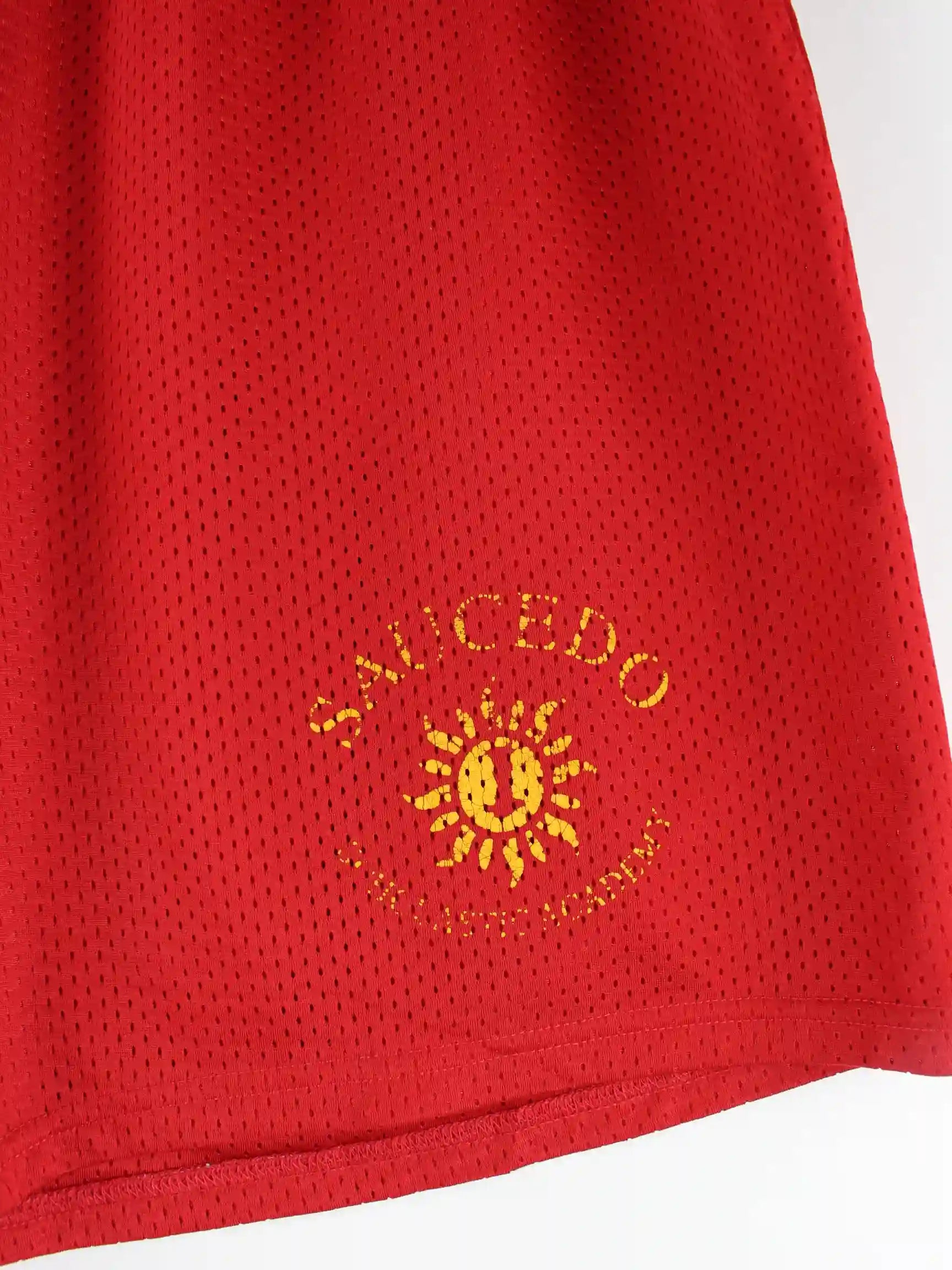 Vintage Shorts in Größe XL. Sie sind aus Synthetik gefertigt und in Rot zu haben.
