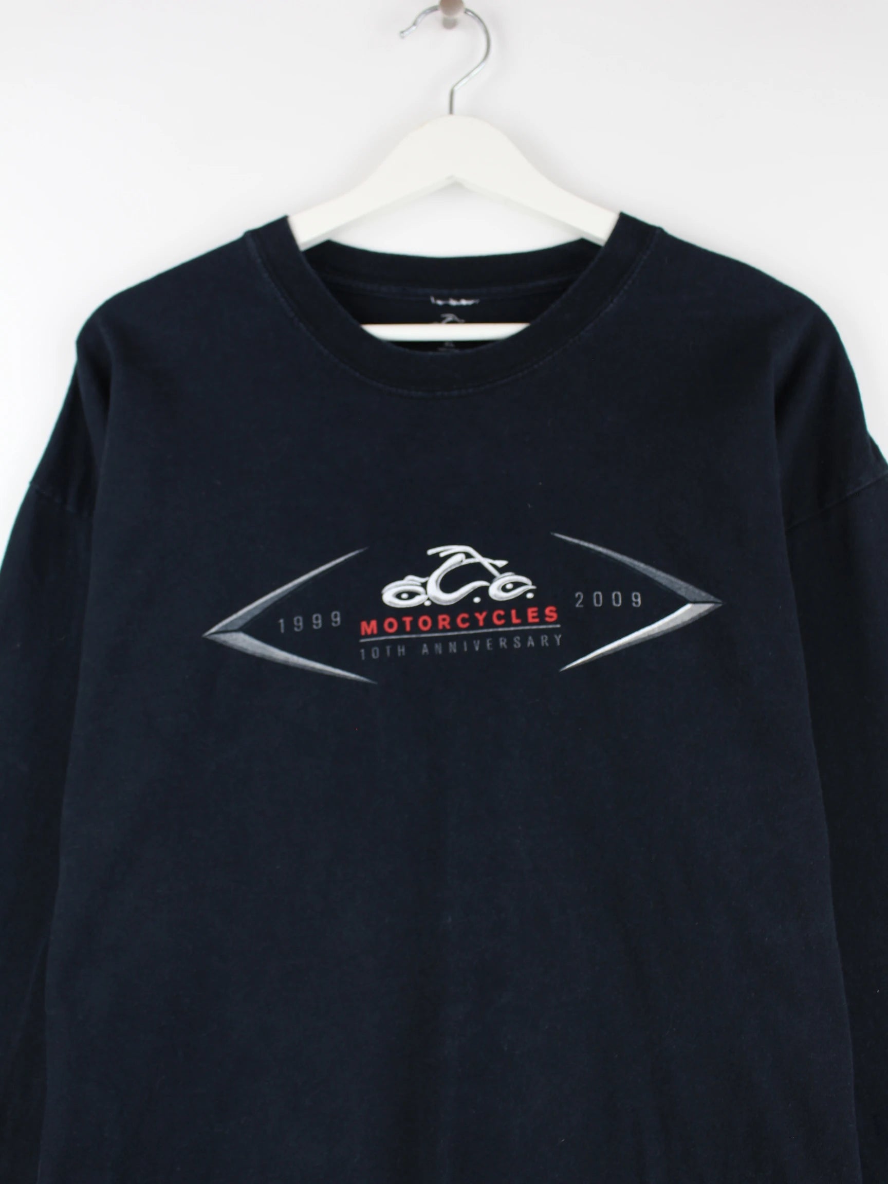 Vintage Sweatshirt in Größe XL. Es ist aus Baumwolle gefertigt und in Schwarz bei uns zu bekommen. Mit schönem Motorcycle Print.