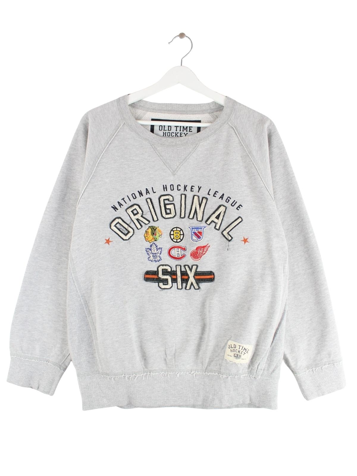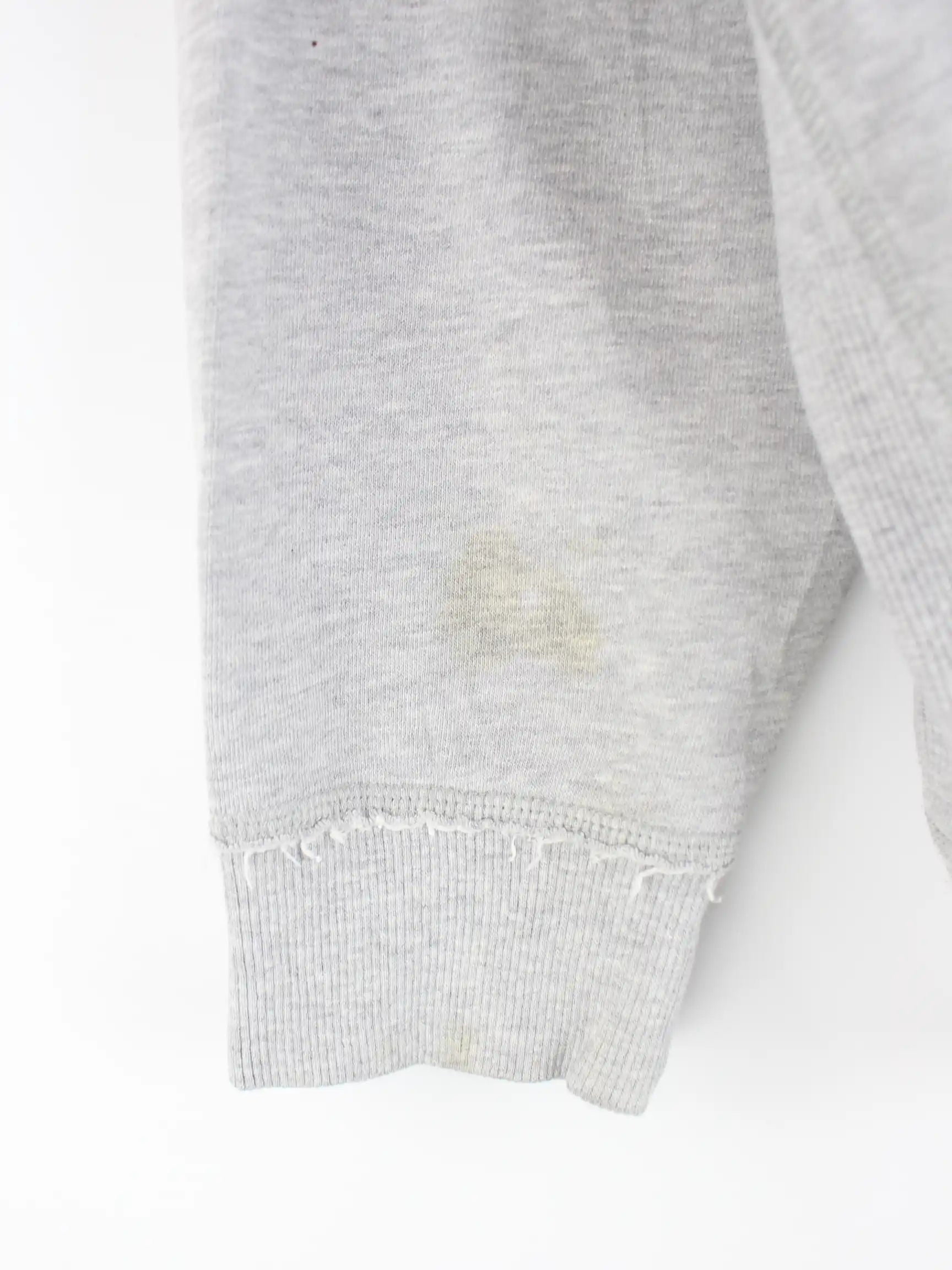Grauer Vintage Sweater in Größe M. Er ist aus einer Baumwollmischung . Den Zustand würden wir als 'In Ordnung' bezeichnen (vergl. Bilder).