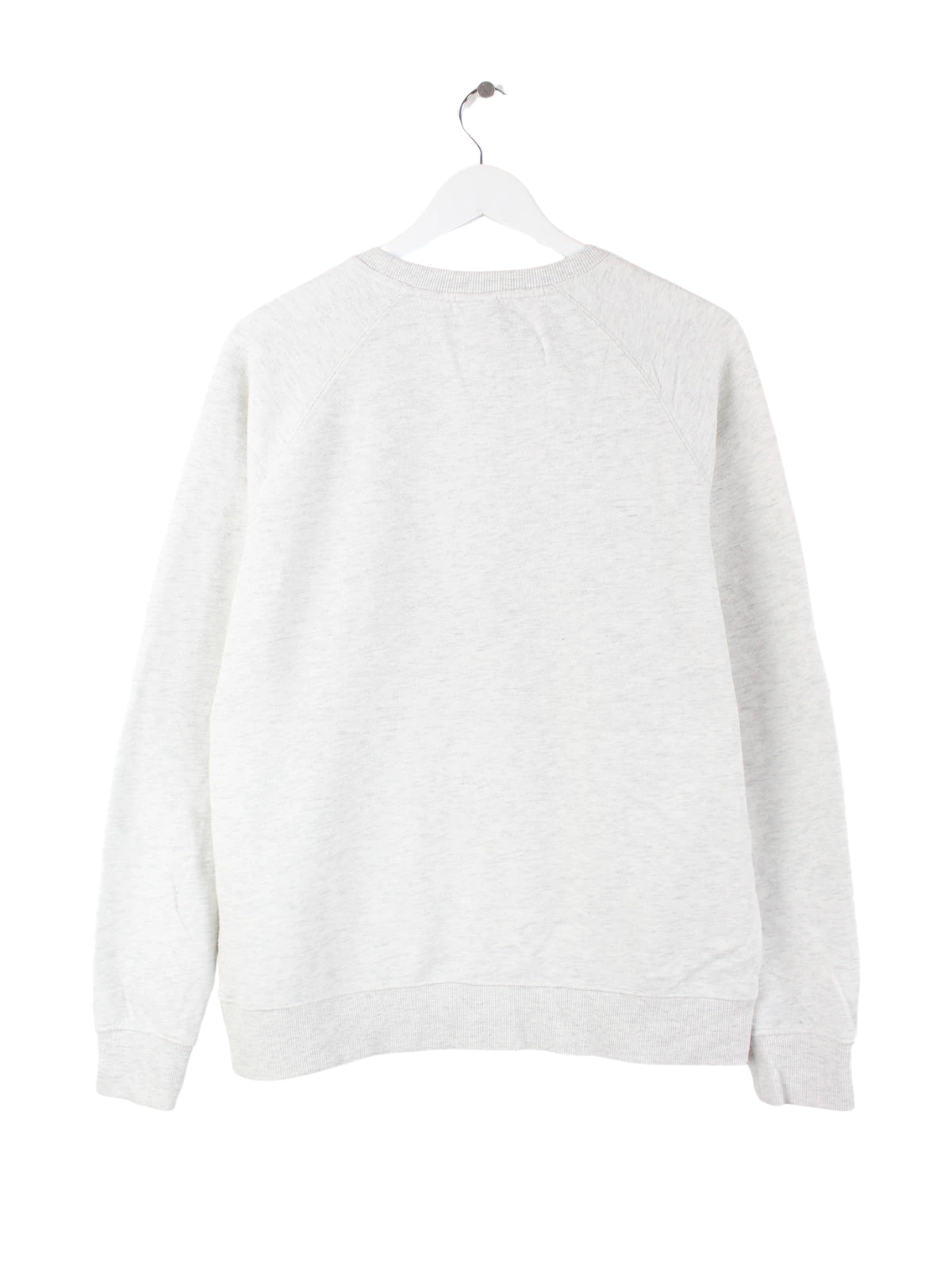 Grauer Vintage Sweater mit gesticktem Logo in Größe L. Er ist aus einer Baumwollmischung hergestellt und in gutem Zustand lieferbar.