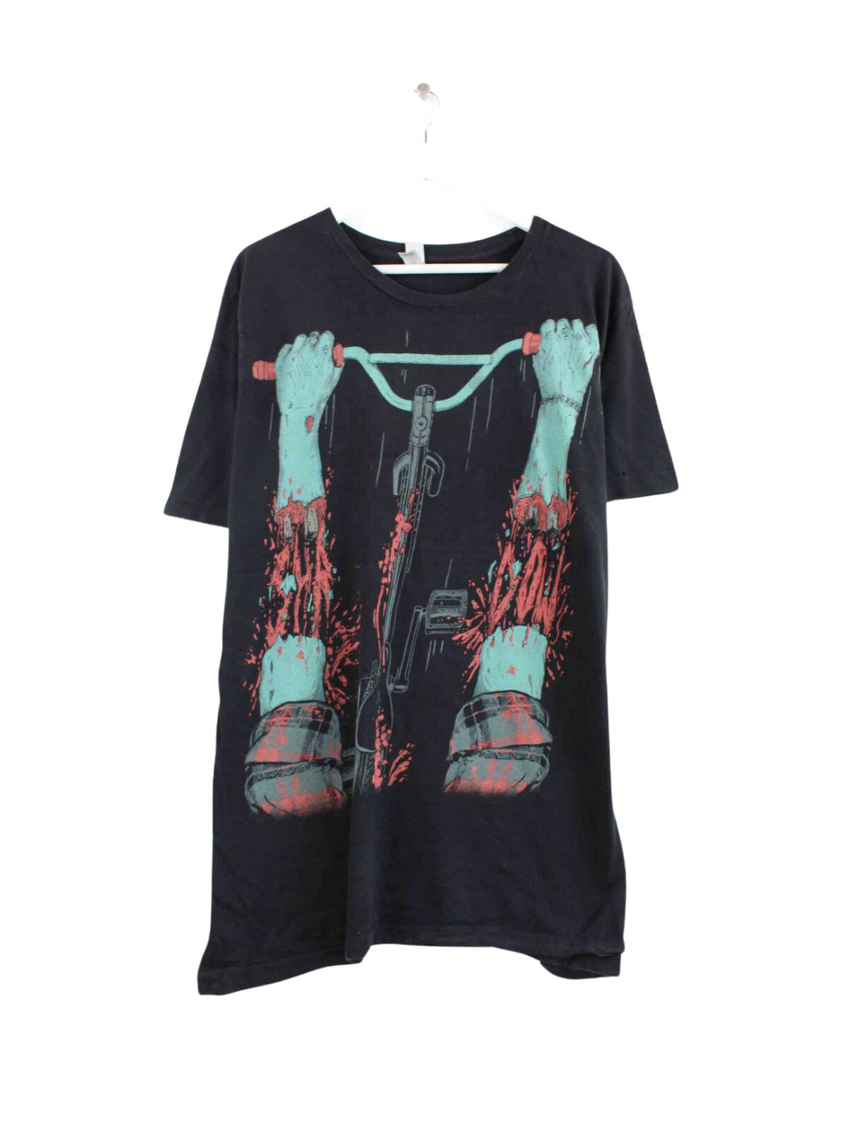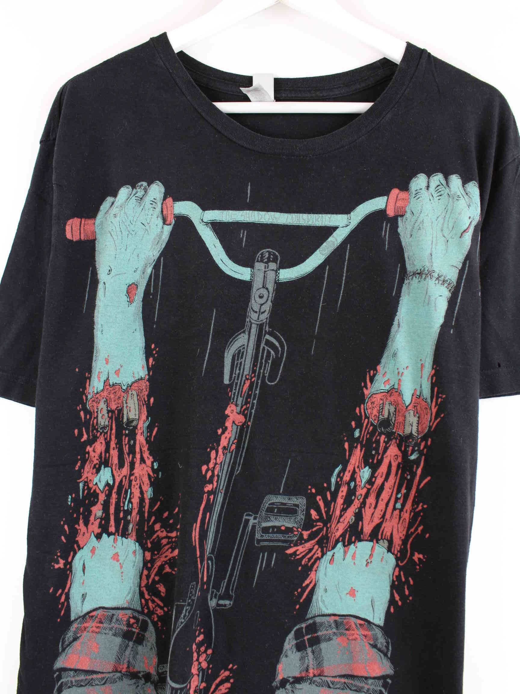 Vintage T-Shirt in Größe XL. Es ist aus Baumwolle und in Schwarz zu haben. Mit schönem Print.