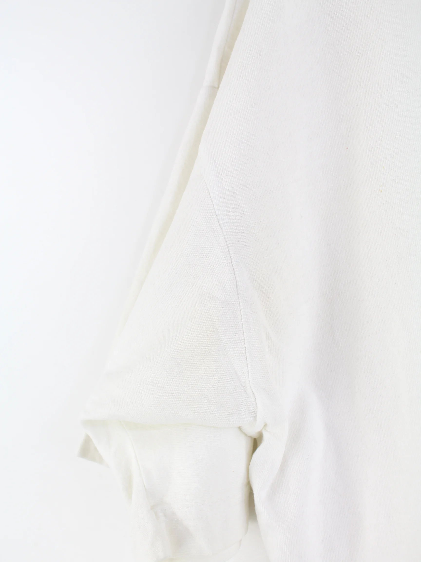 Vintage T-Shirt in Größe L. Es ist aus Baumwolle angefertigt und in Weiß im Bestand. Mit seltenem Print.