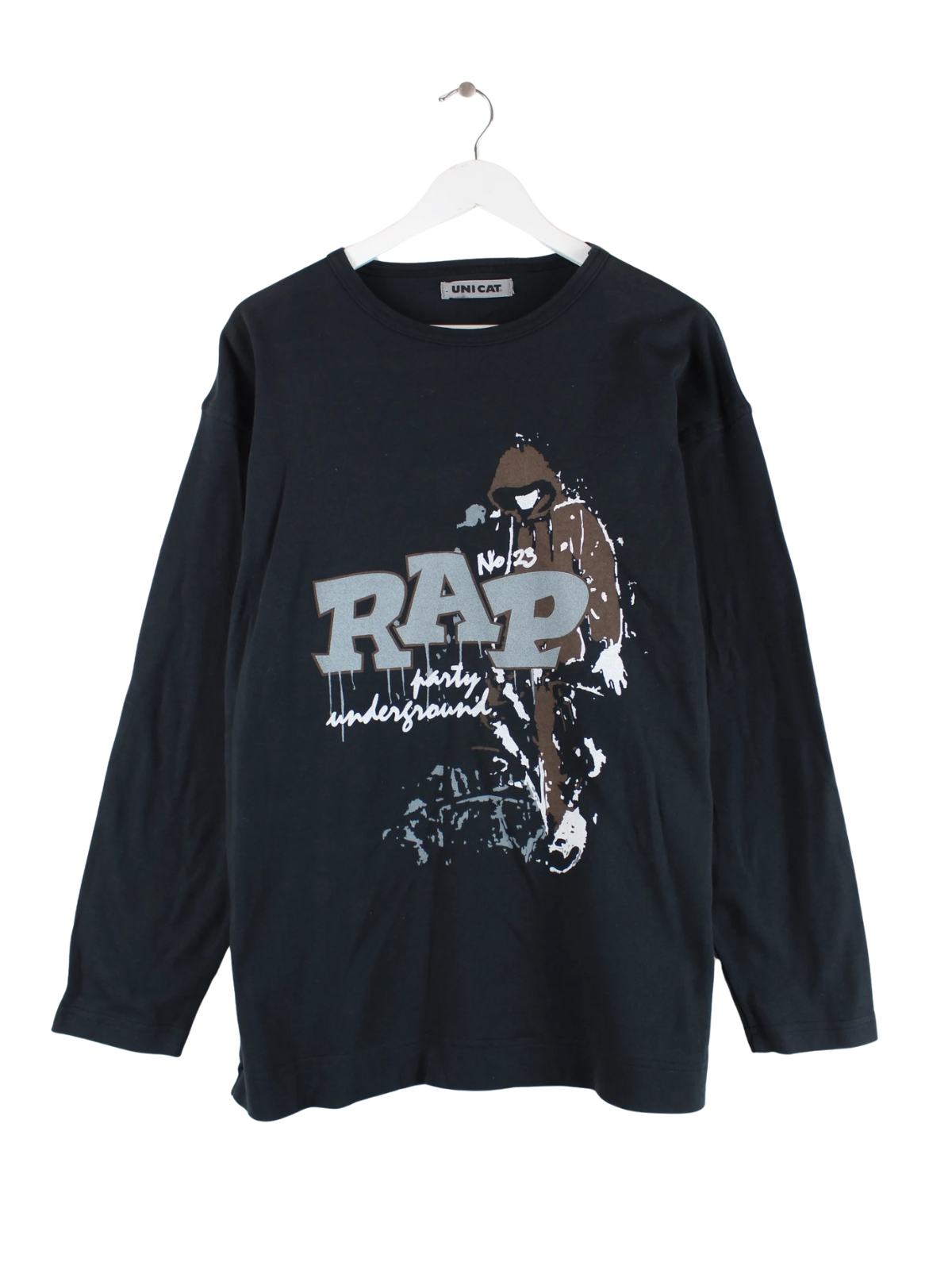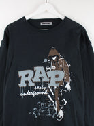 Vintage Sweatshirt in Größe M. Es ist aus Baumwolle angefertigt und in Schwarz lieferbar. Mit tollem Rap Print.