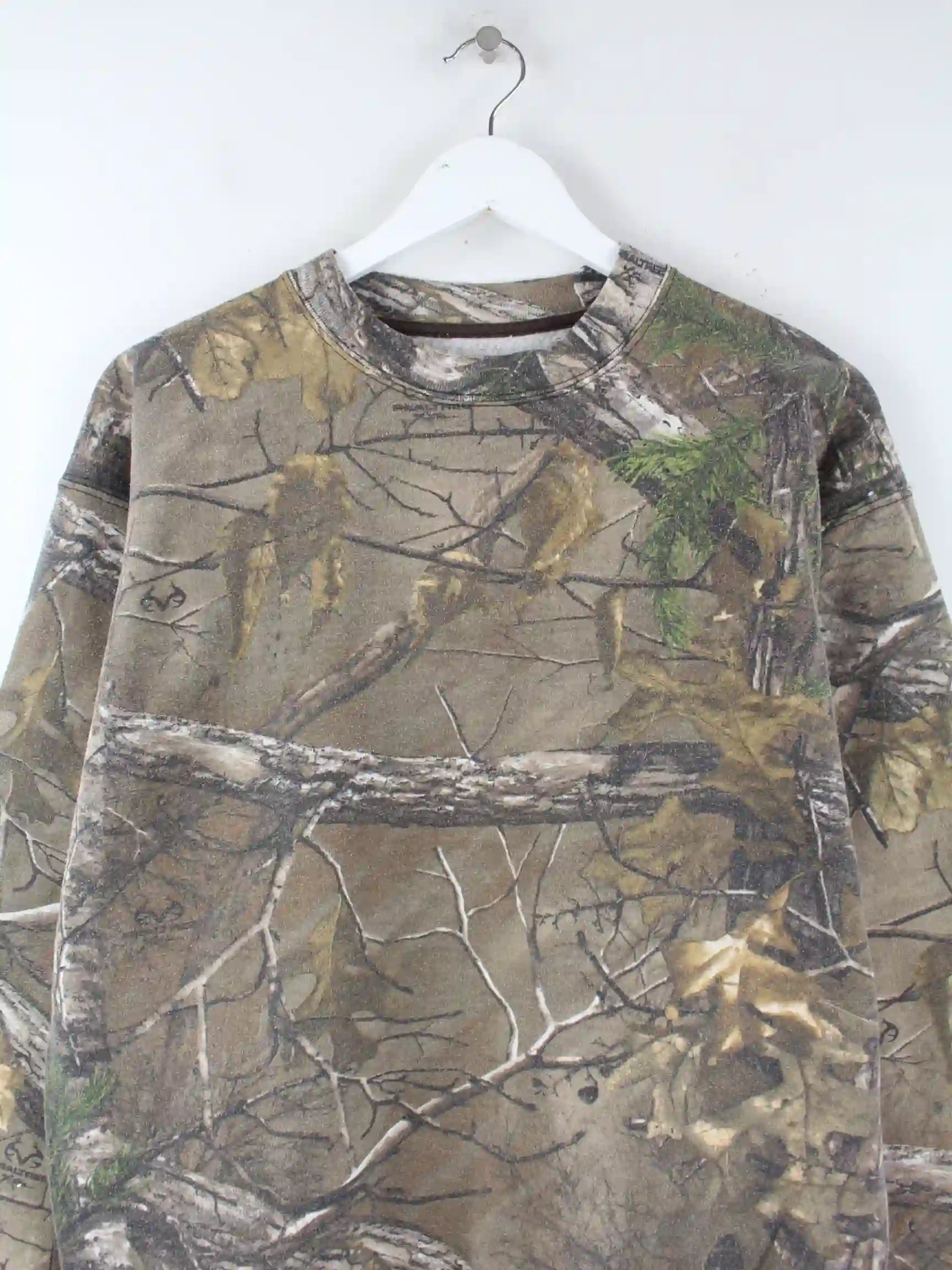 Vintage Sweater in Größe M. Er ist aus einer Baumwollmischung angefertigt und in Grün lieferbar.