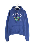 Vintage Hoodie in Größe XL. Er ist aus einer Baumwollmischung produziert und in Blau zu haben.