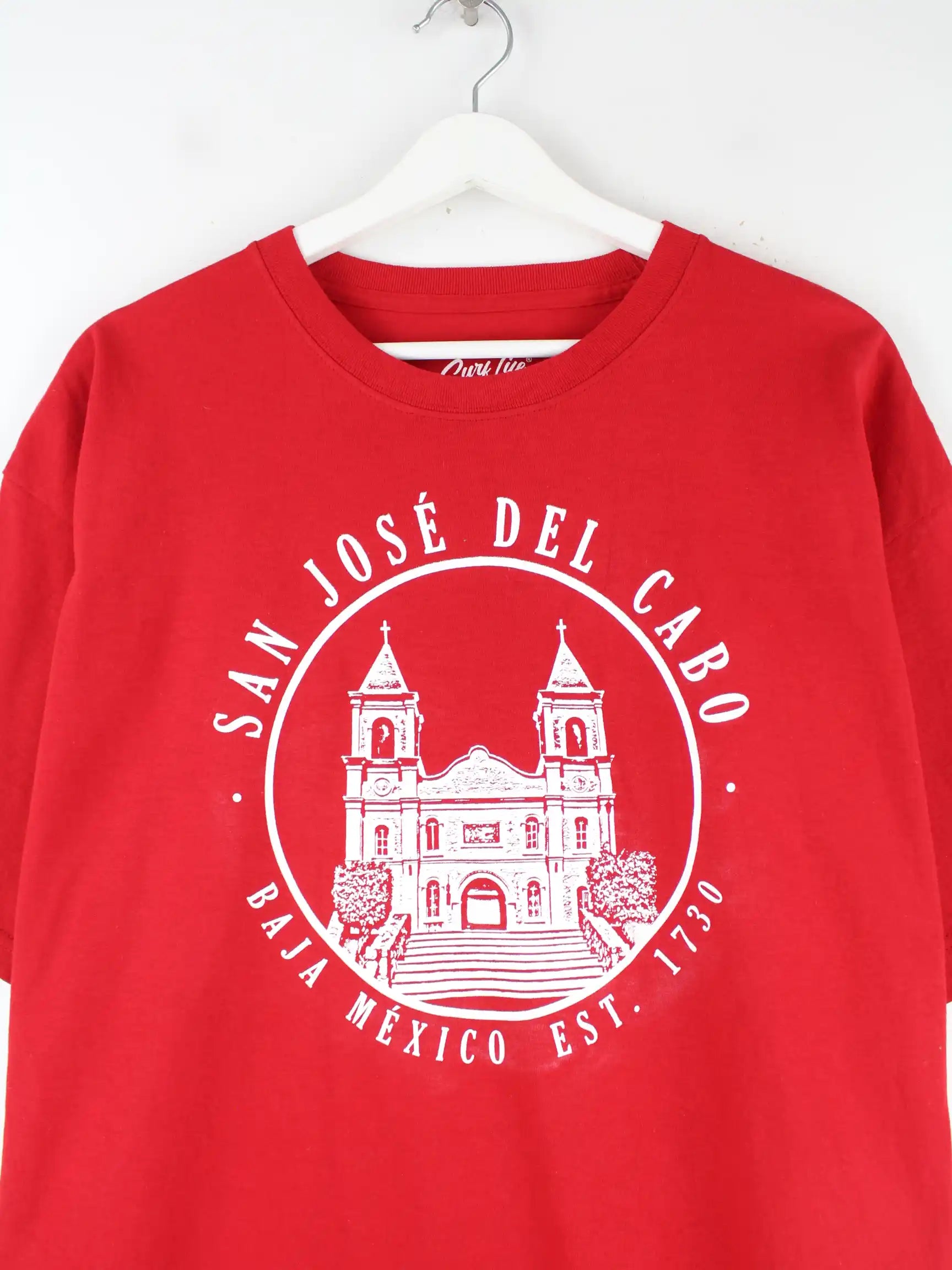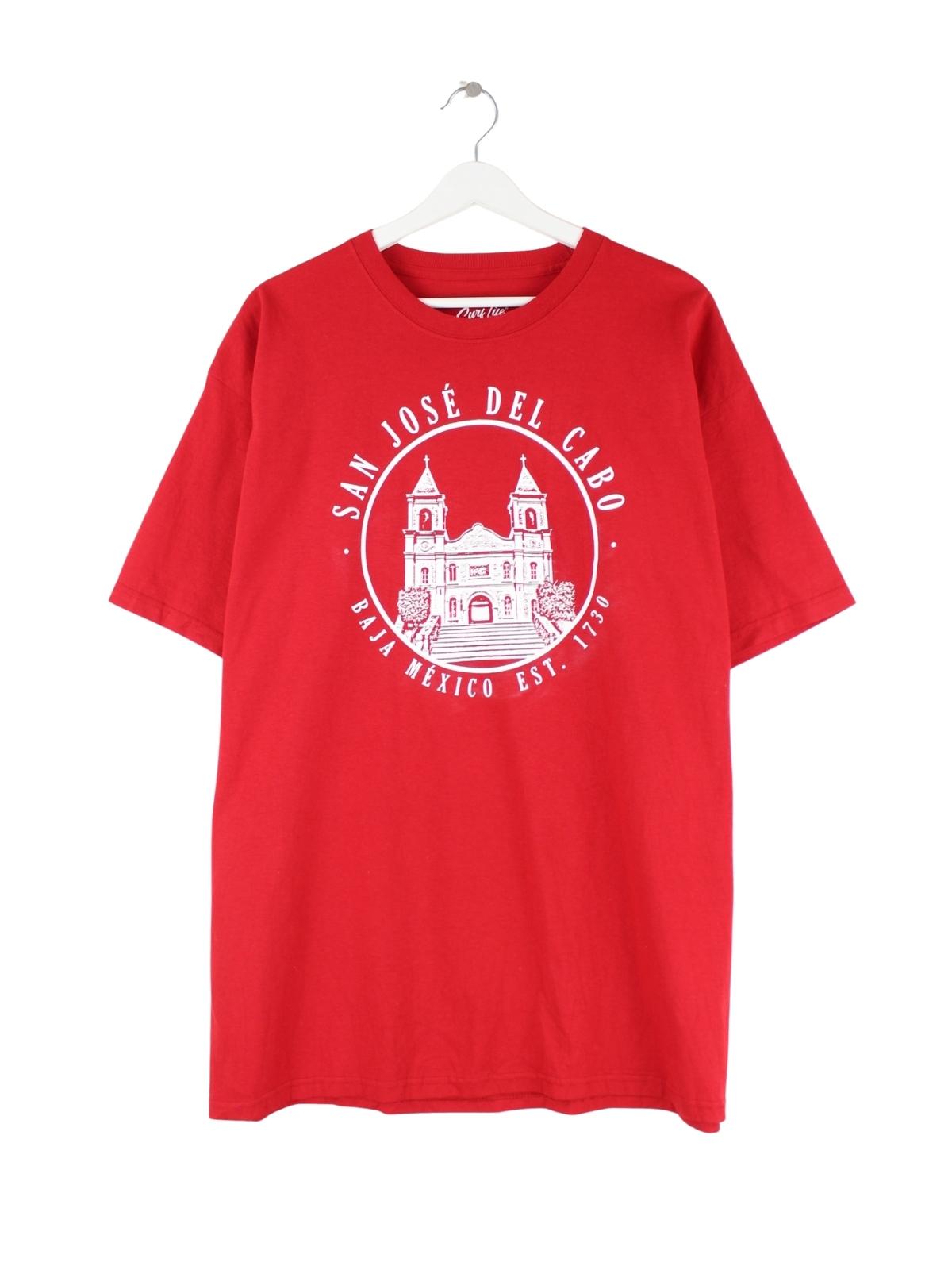 Rotes Vintage T-Shirt in Größe XL. Es ist aus Baumwolle und in gutem Zustand im Angebot. Mit schickem Jose Print.
