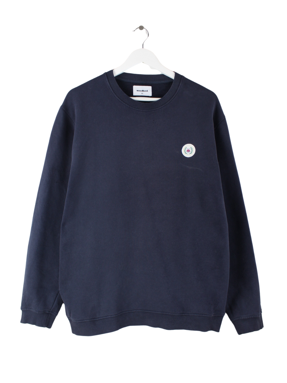 Blauer Vintage Sweater in Größe XL. Er ist aus einer Baumwollmischung gefertigt und in gutem Zustand zu haben.
