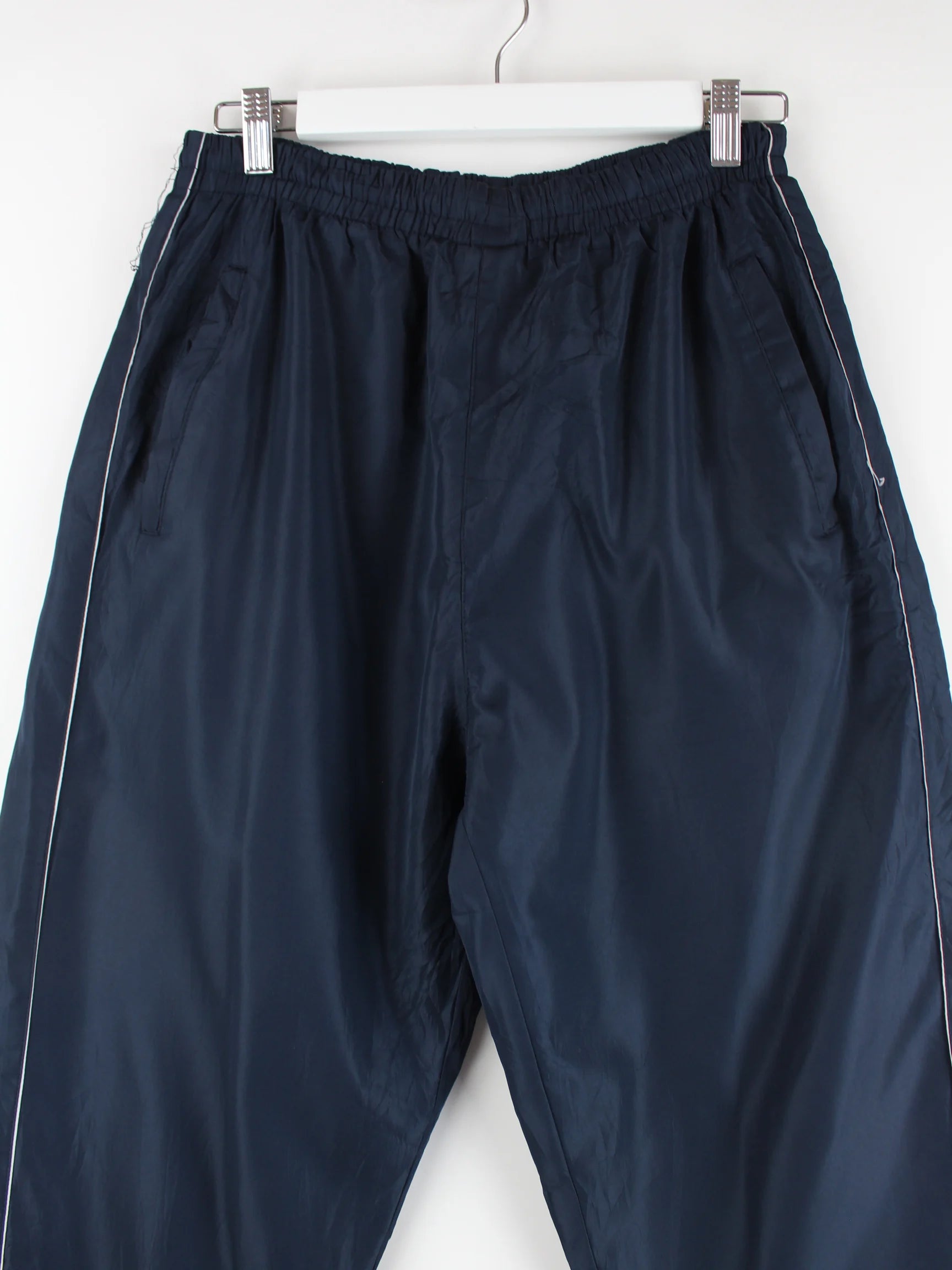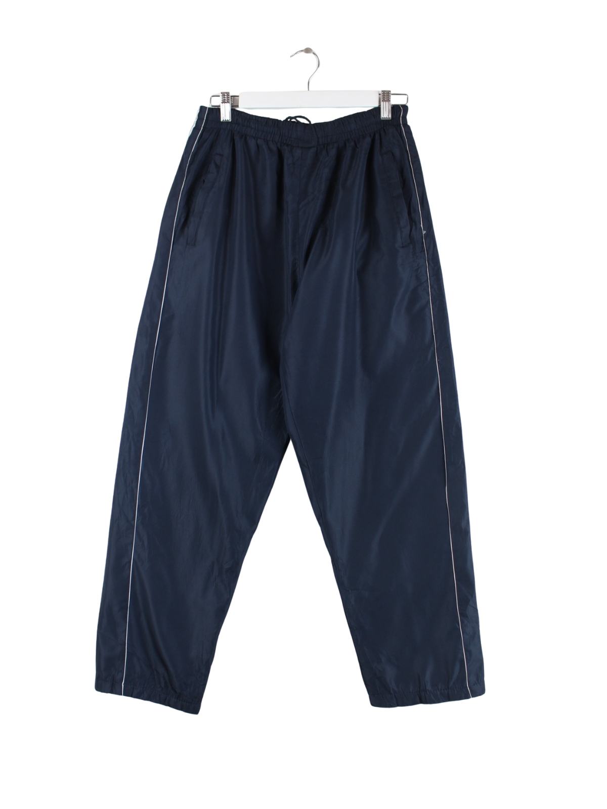 Blaue Vintage Track Pants in Größe L. Sie sind aus Synthetik produziert und in sehr gutem Zustand bei uns vorrätig.