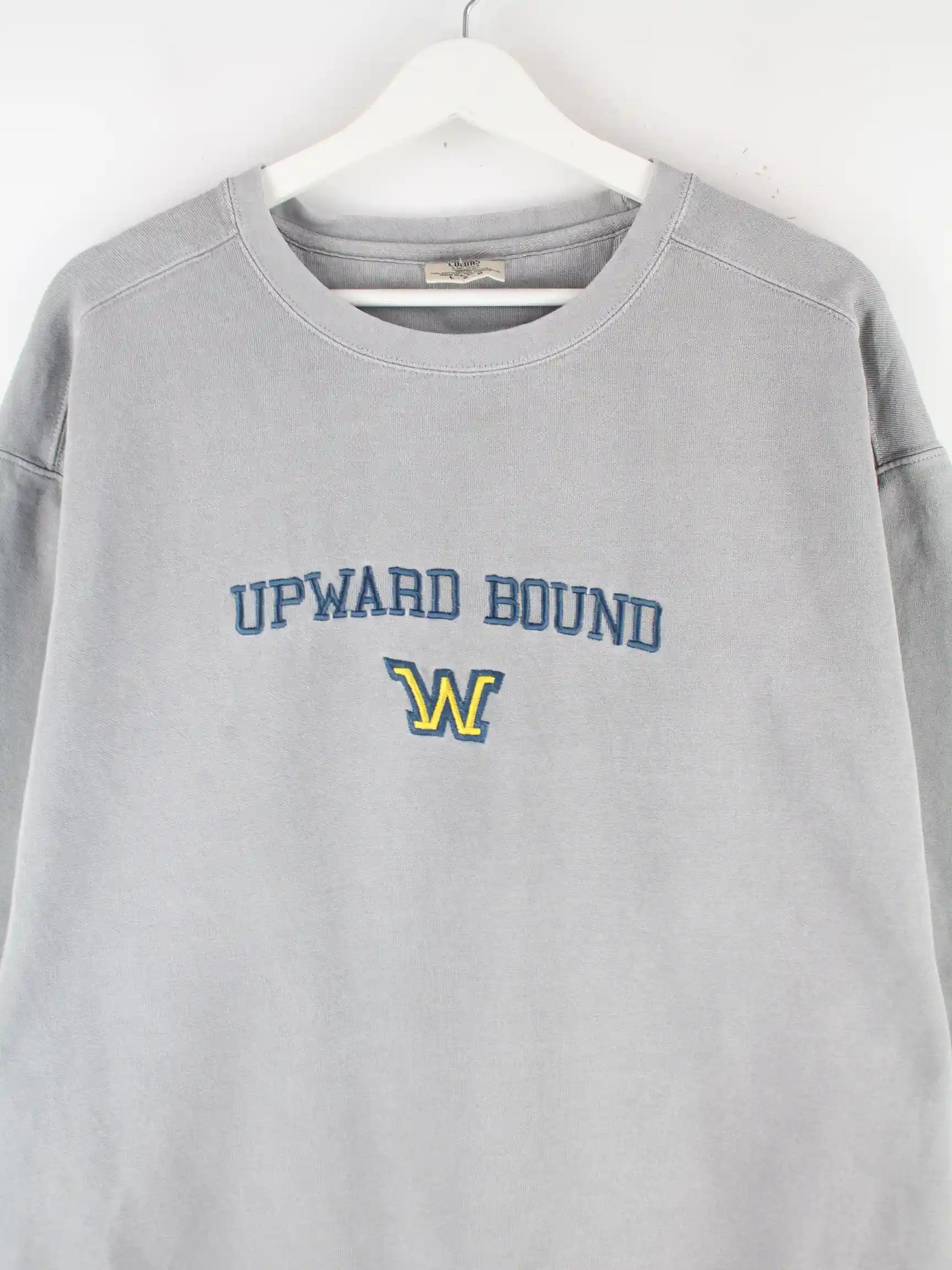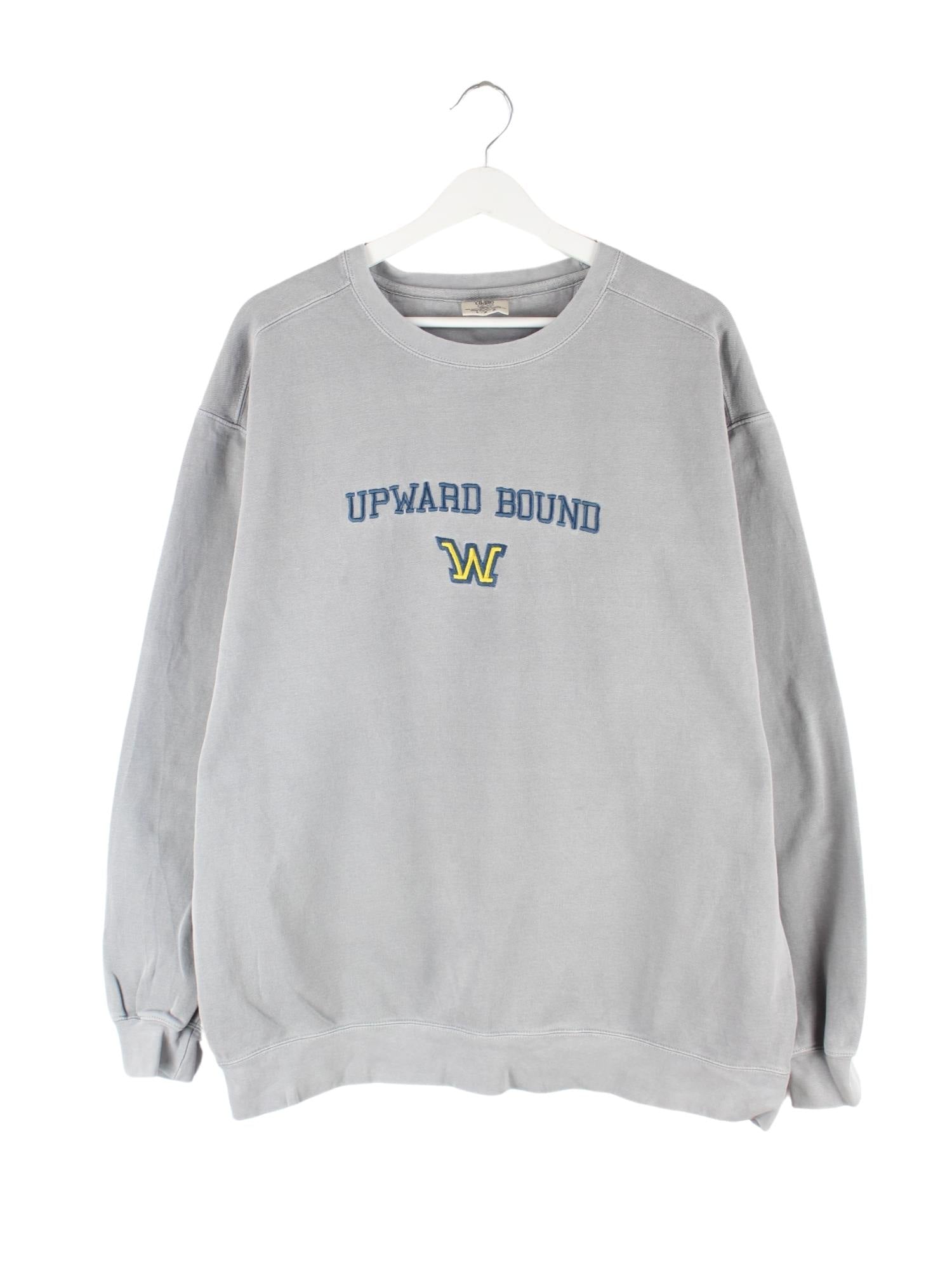 Grauer Vintage Sweater mit Stick in Größe L. Er ist aus einer Baumwollmischung hergestellt und in sehr gutem Zustand zu haben.