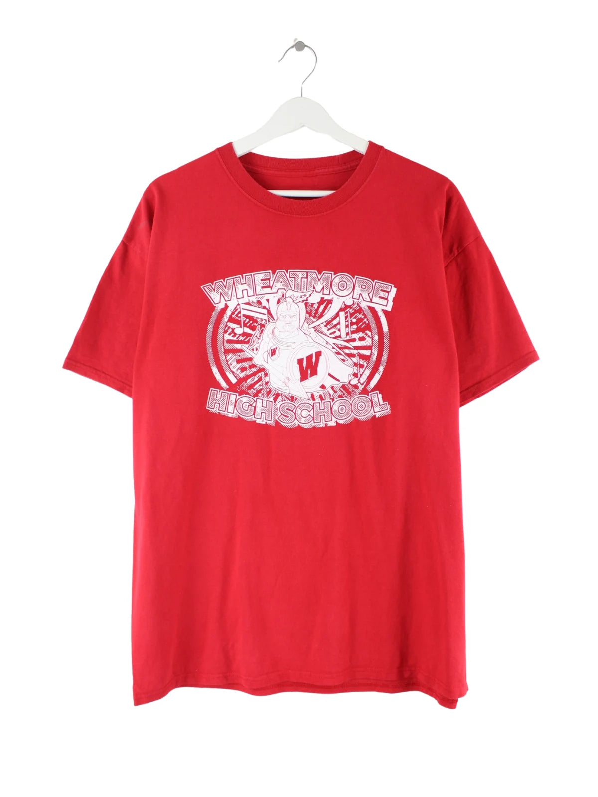 Vintage Wheatmore Highschool Print T-Shirt Rot L