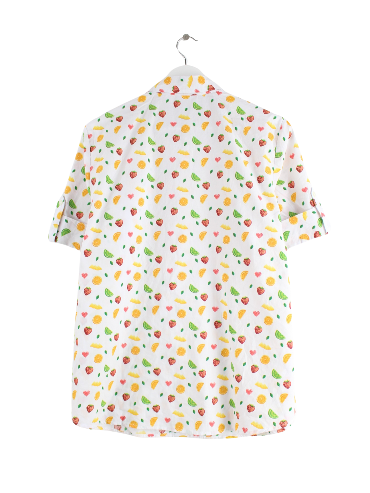 Vintage y2k Fruit Pattern Kurzarm Hemd Weiß M