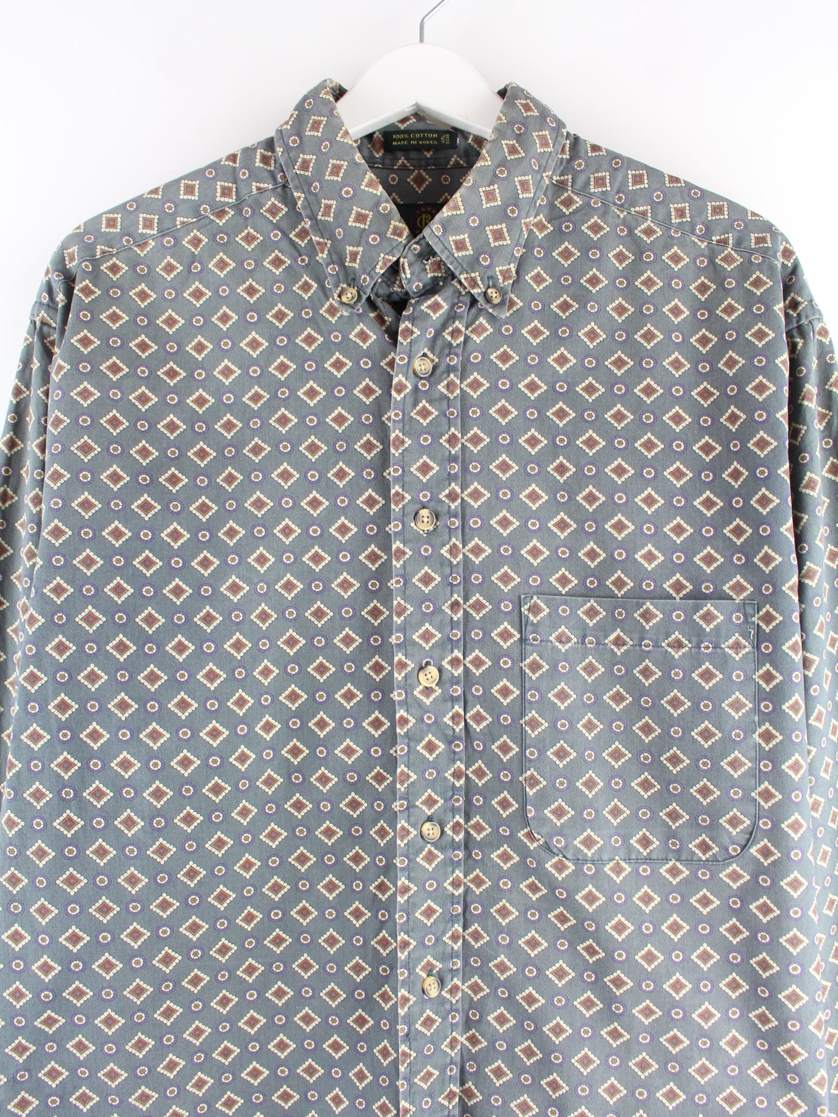 Vintage y2k Pattern Hemd Grau L