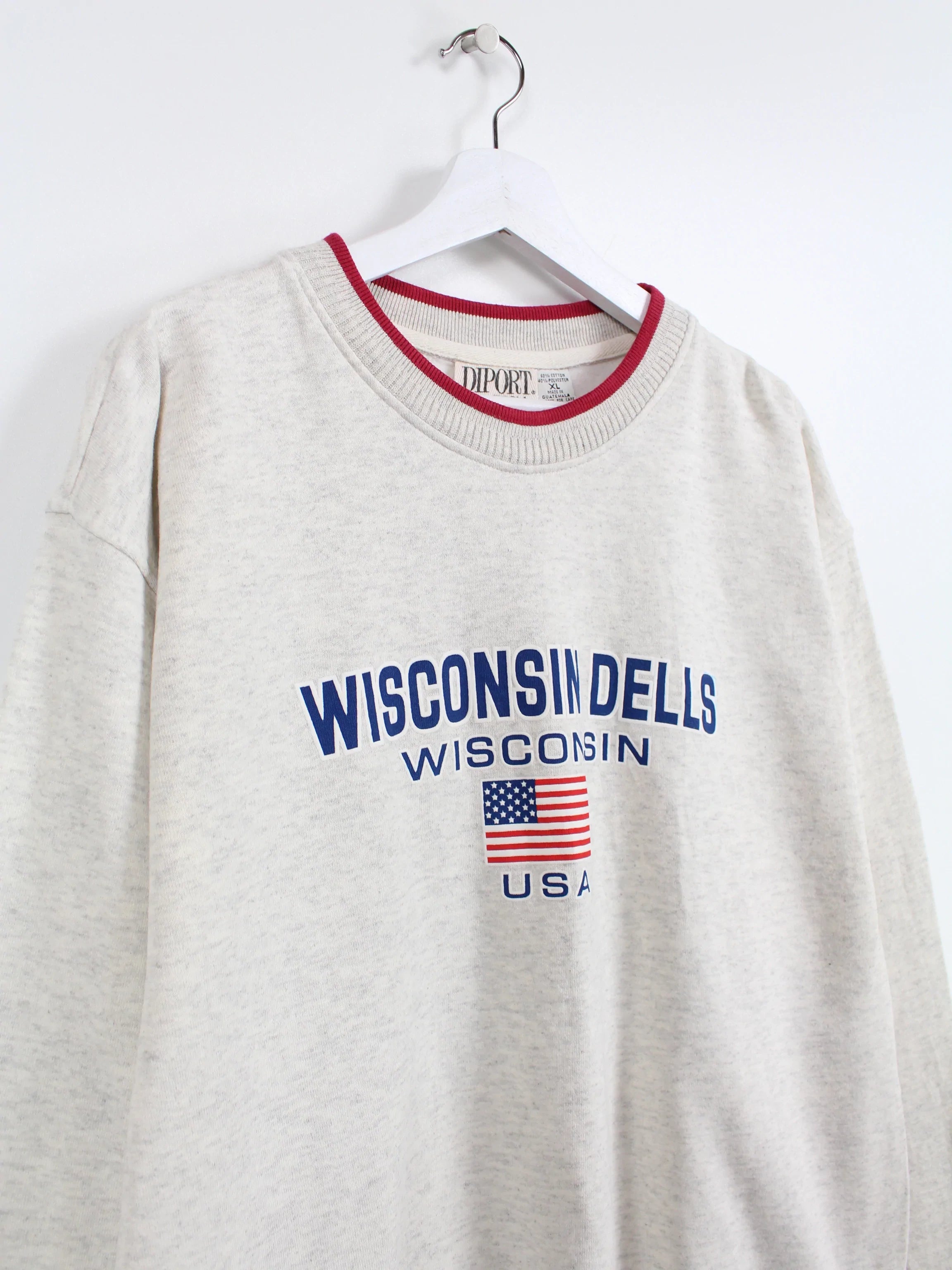 Pull gris de la marque Diport USA, avec un grand imprimé USA.