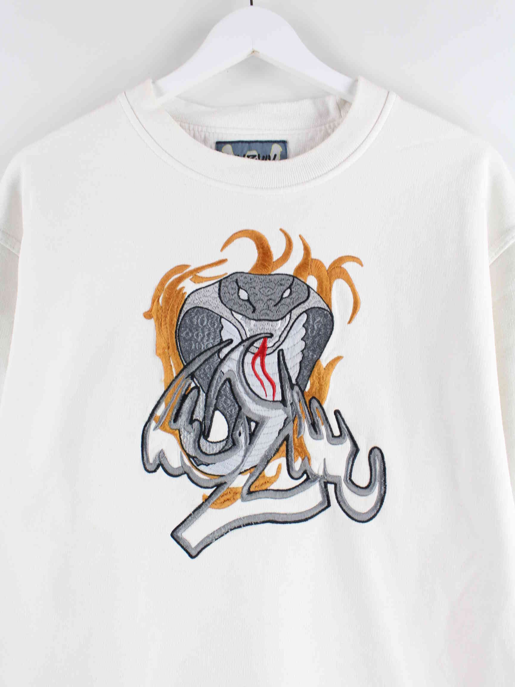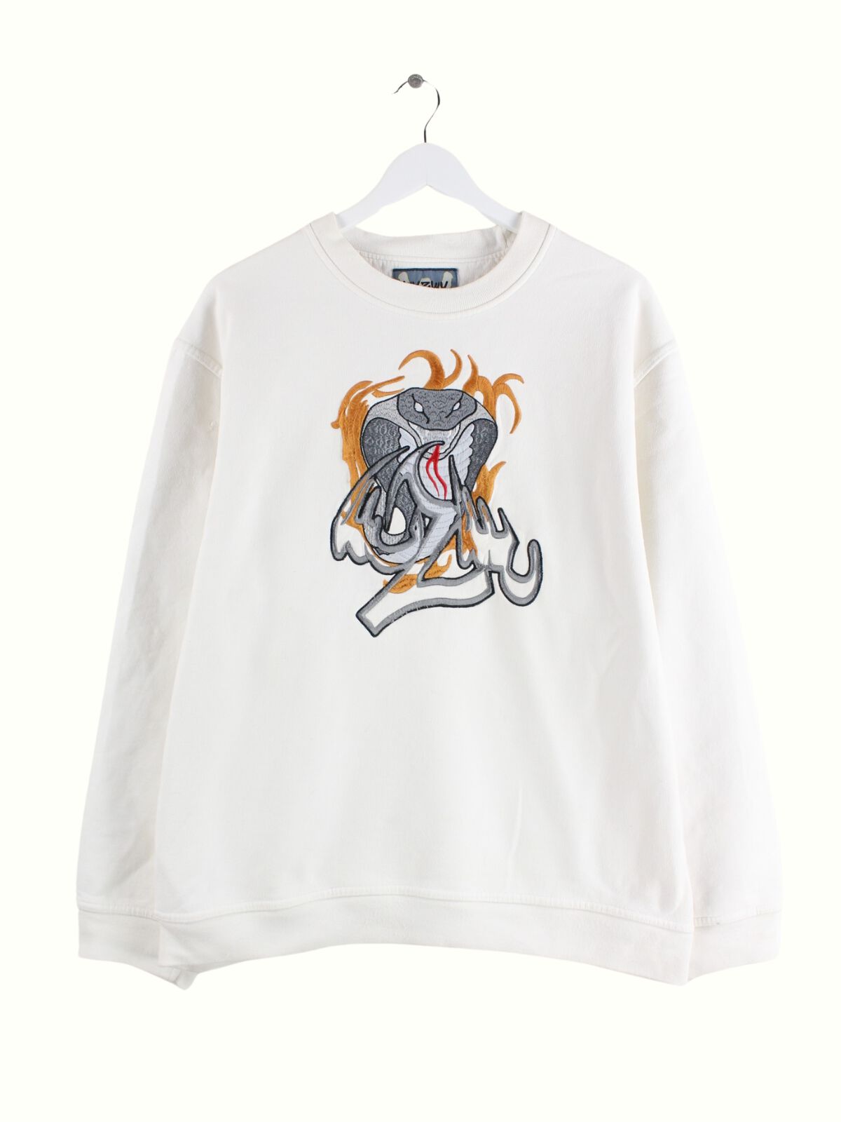 Wu Zwu 90s Vintage Snake Embroidery Sweater Weiß M