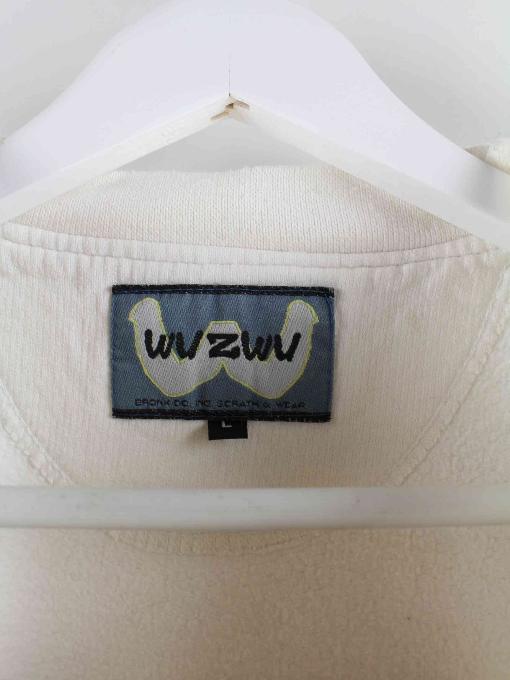 Sweater vom Brand Wu Zwu in Größe M aus den 90'ern. Er ist aus einer Baumwollmischung gemacht und in Weiß bei uns zu bekommen.