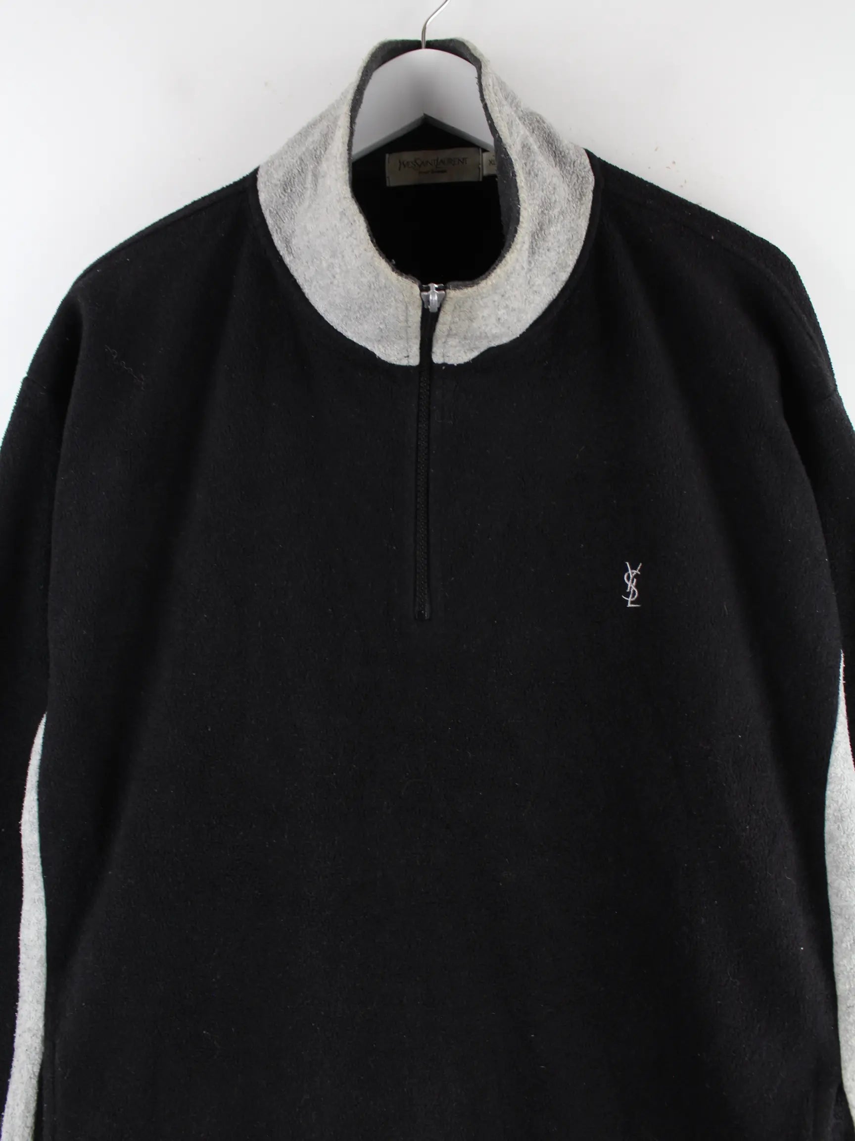 Yves Saint Laurent 90s Vintage Fleece Half Zip Sweater Schwarz XL