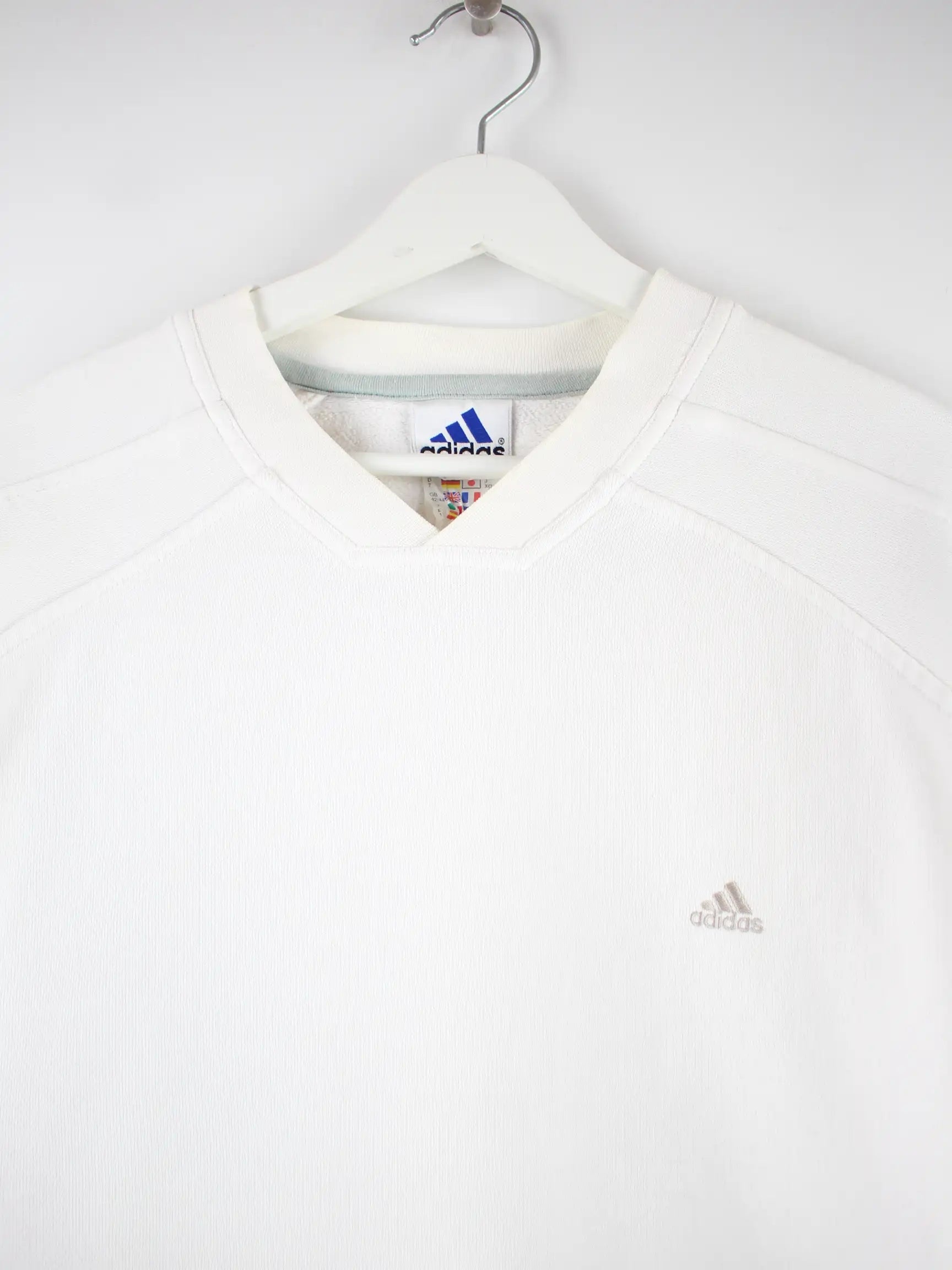 Der langjährigen Geschichte dieser traditionellen Marke ist es zu verdanken, dass es heute so einige Vintageschätze von Adidas mit ganz unterschiedlichen Logo-Tags je nach Alter des Piece gibt – egal ob Hoodies, Sweater, Jacken oder Trainingsanzüge – Adidas Vintage Pieces mit den drei Streifen haben einfach einen charakteristischen Flair – und sind gerade deshalb in der Vintage Szene wahnsinnig beliebt und angesehen. Auch Ihr feiert Adidas Teile abnormal – weshalb Adidas eine unserer beliebtesten Marken bei Peeces ist! Ob Vintage Adidas Pullover, Vintage Adidas oversized Hoodie oder Vintage Adidas Trainingsjacke – egal, wonach Du suchst, in unserem Shop wirst Du mit einer riesigen Auswahl an Adidas Vintage fündig! Bleib am besten direkt auf dieser Seite, um unsere aktuell gesamte Collection an Adidas Pieces zu durchstöbern – viel Spaß beim Shoppen! Du hast noch nicht genug? Keine Sorge, wir laden jeden Dienstag, Donnerstag und Sonntag um 18 Uhr neue Kleidung hoch – und bei fast jedem Drop sind Pieces von Adidas dabei! Also, mach Dich ready für den nächsten Drop!