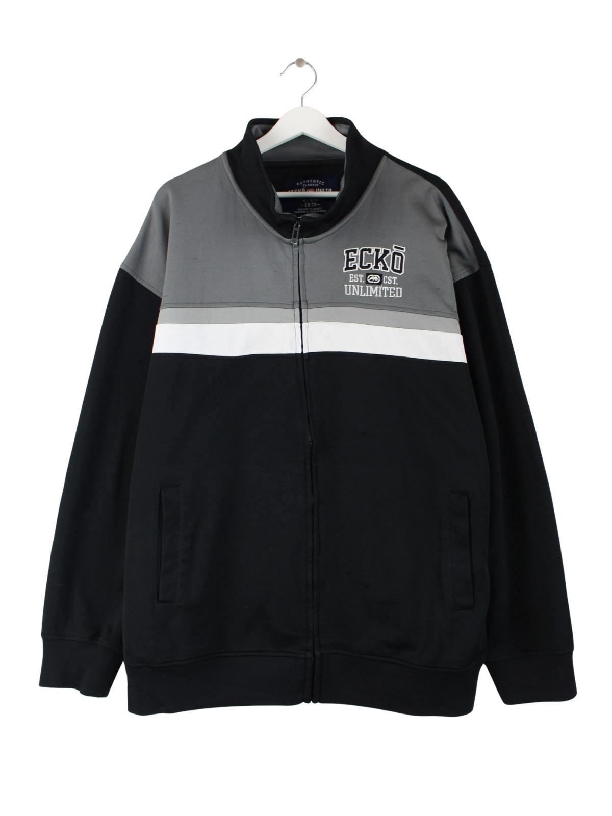Schwarze Trainingsjacke der Brand Ecko aus Anfang der 2000'er in Größe XXL. Sie ist aus Synthetik hergestellt und in gutem Zustand auf Lager.