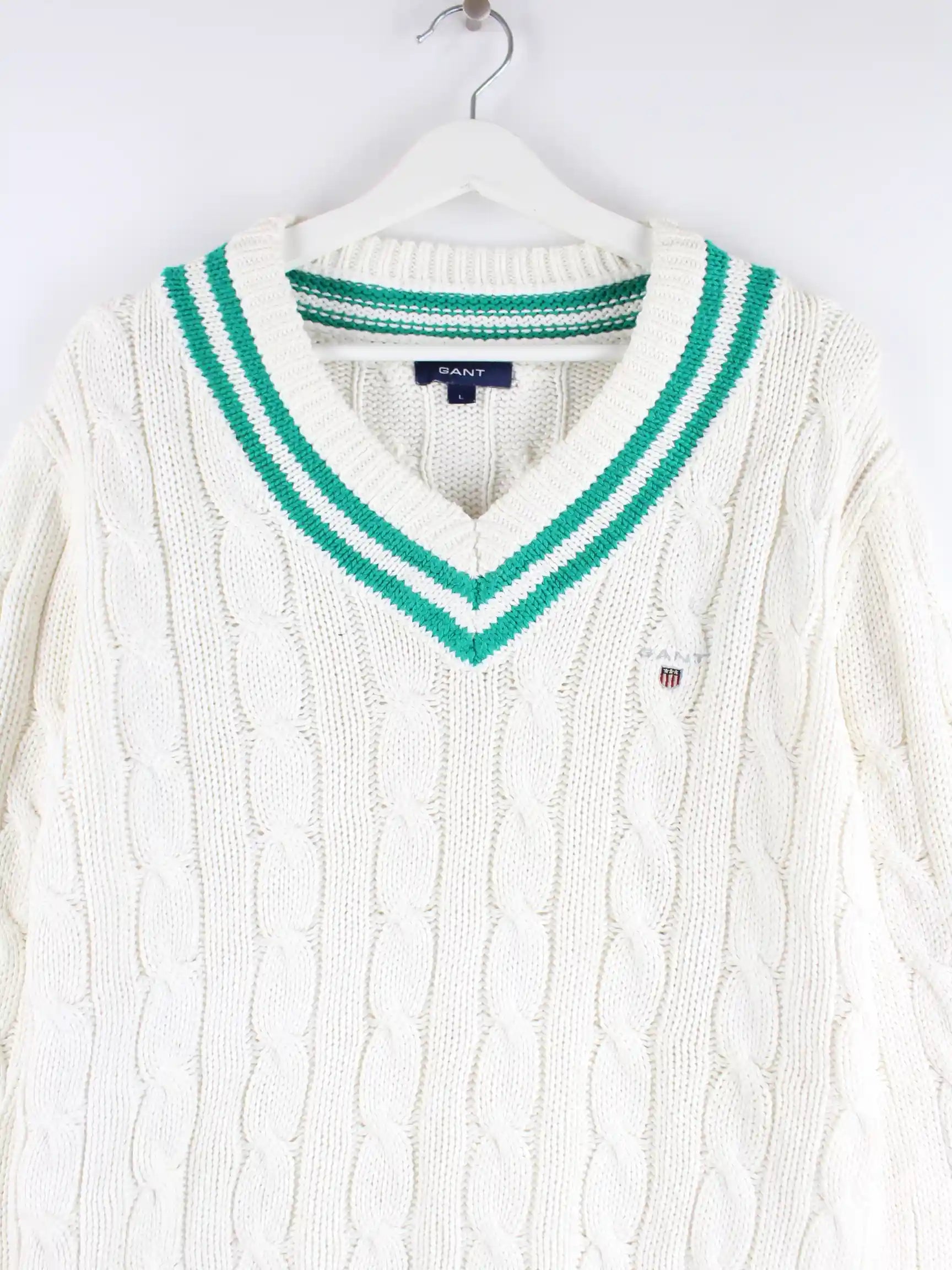 Pullover vom Brand Gant in Größe L. Er ist aus Baumwolle gemacht und in Weiß lieferbar.