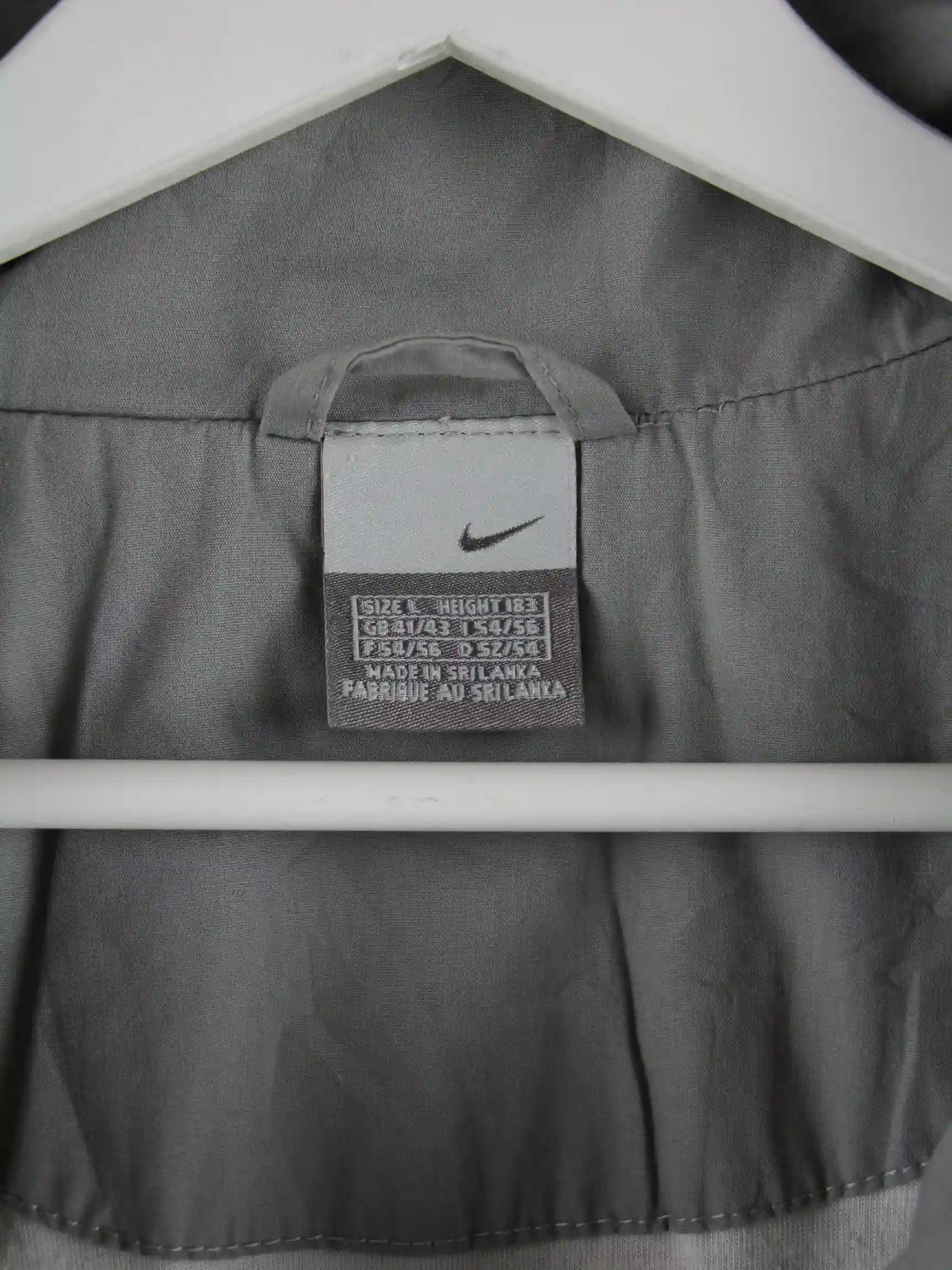 Graue Trainingsjacke der Marke Nike in Größe L. Sie ist aus Synthetik hergestellt und in sehr gutem Zustand im Bestand.