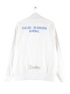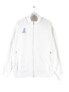 Trainingsjacke der Marke Nike mit gestickten Motiven in Größe L. Sie ist aus Synthetik gefertigt und in Weiß zu haben.