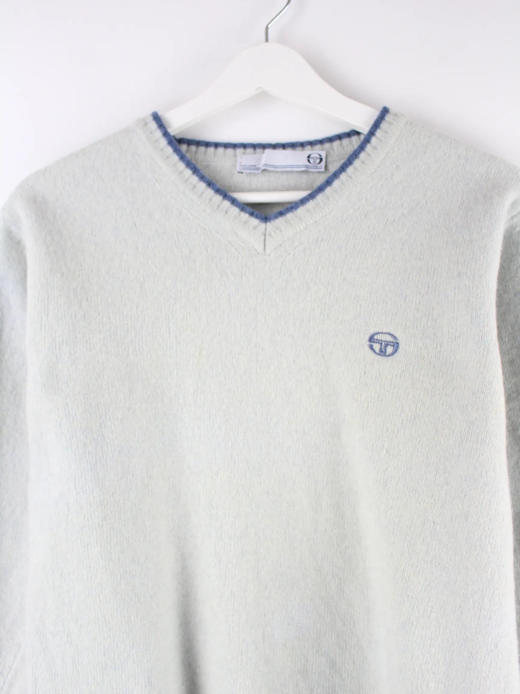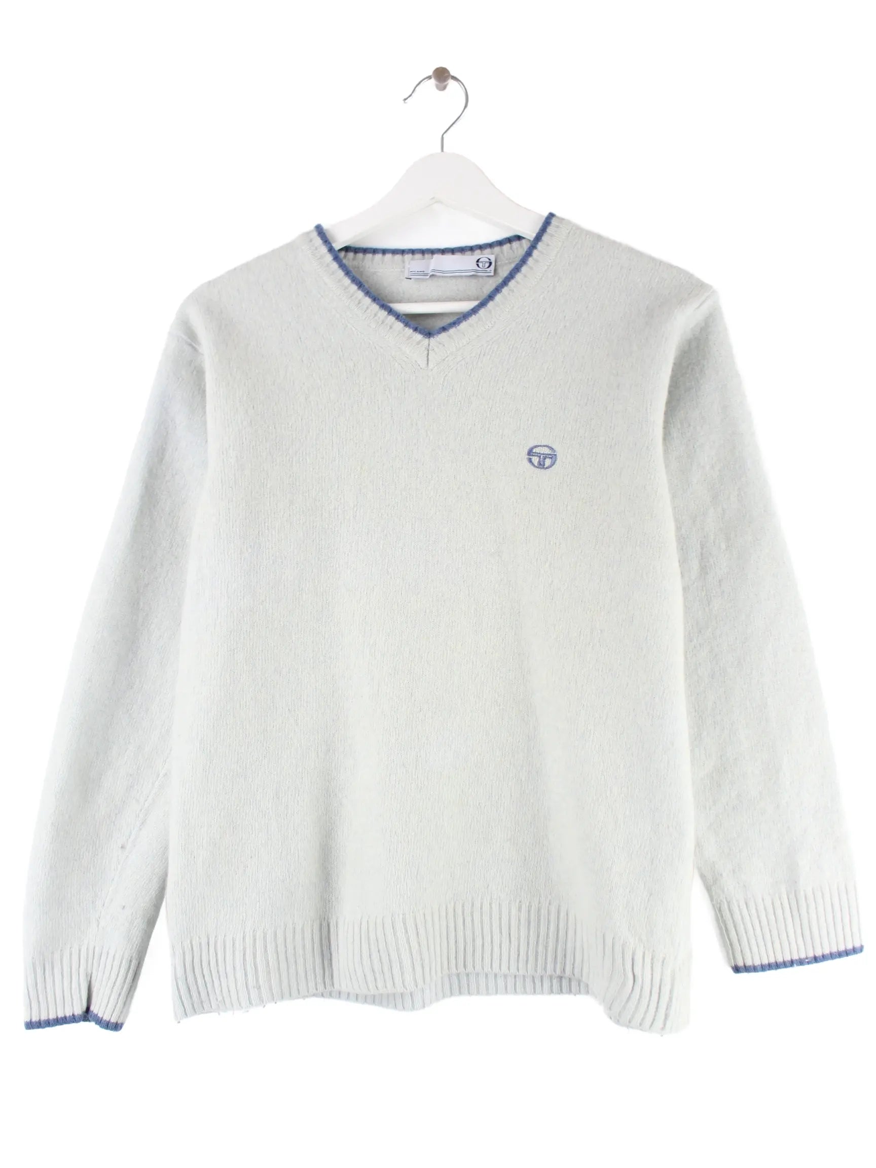 Grauer Pullover der Brand Sergio Tacchini in Größe XS. Er ist aus einer Wollmischung hergestellt und in sehr gutem Zustand im Angebot.