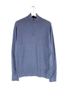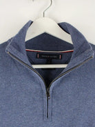 Blauer Pullover mit kurzem Reißverschluß vom Brand Tommy Hilfiger in Größe L. Er ist aus Baumwolle hergestellt und in sehr gutem Zustand im Bestand.