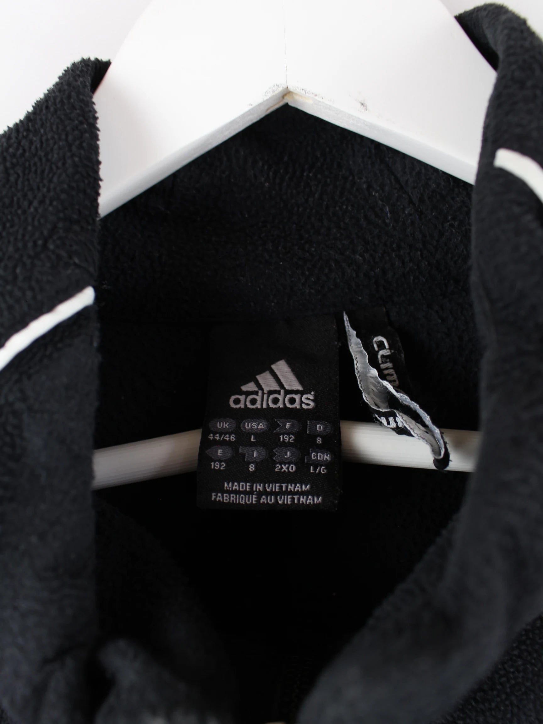 Sweater vom Label Adidas mit kurzem Reißverschluß in Größe M. Er ist aus kuscheligem Fleece gemacht und in Schwarz im Angebot.