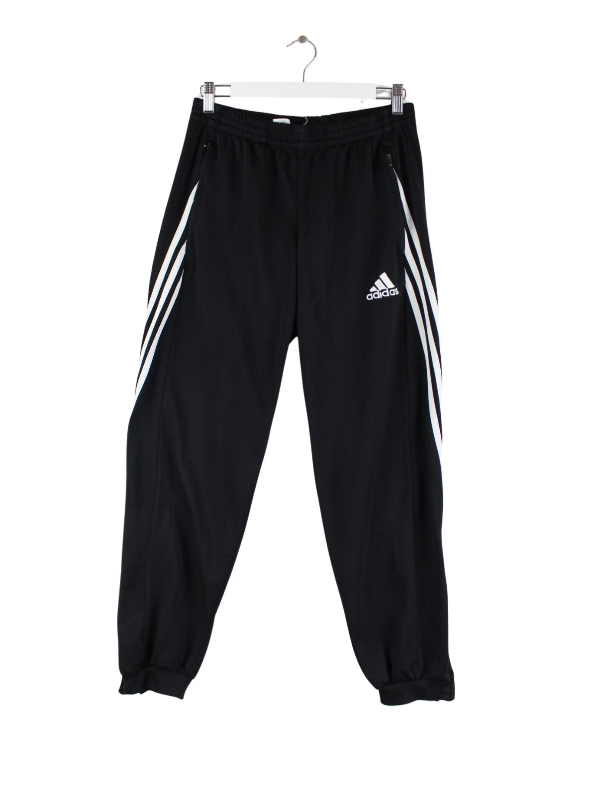 Schwarze Track Pants vom Brand Adidas in Größe S. Sie sind aus einer Baumwollmischung angefertigt und in sehr gutem Zustand in Stock.