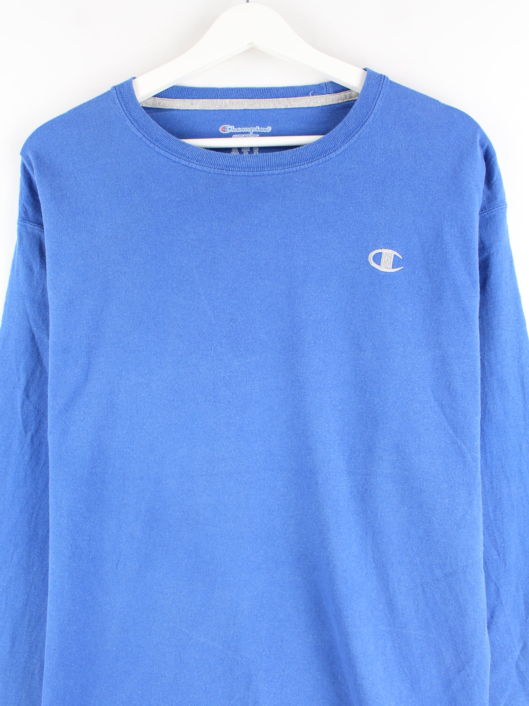 Sweatshirt der Brand Champion in Größe L. Es ist aus Baumwolle gemacht und in Blau in Stock.