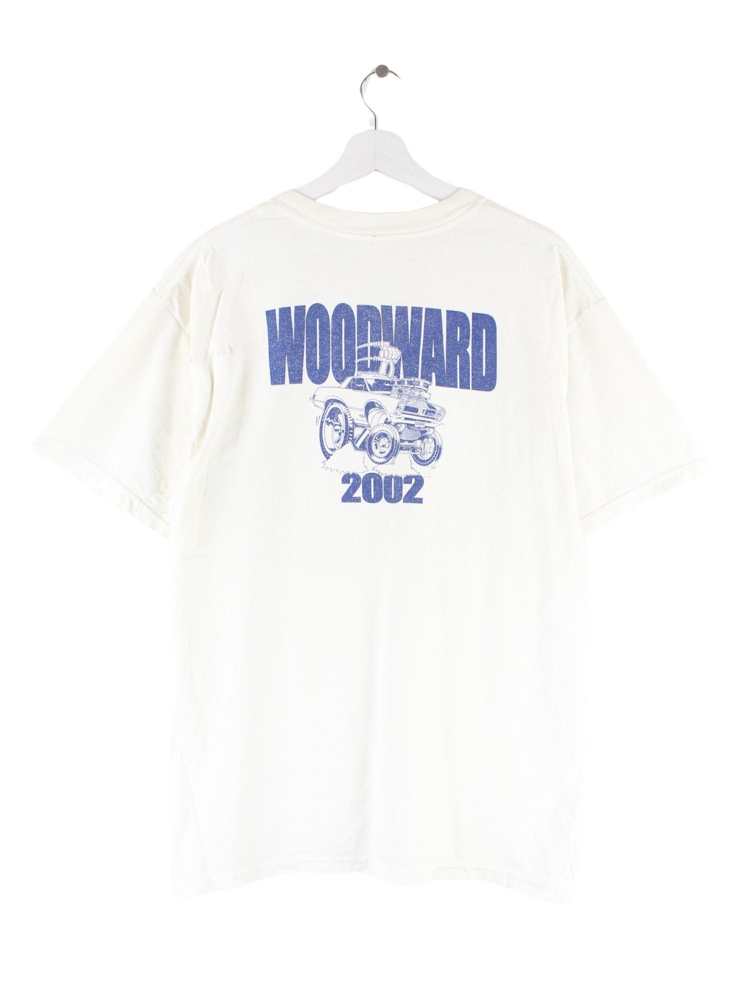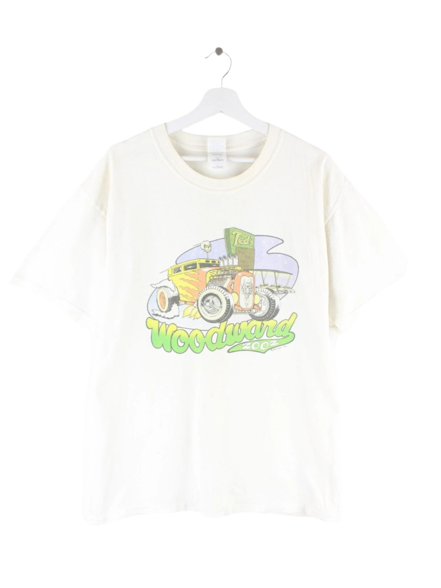 Gildan 2002 Woodward Car Print T-Shirt Weiß L