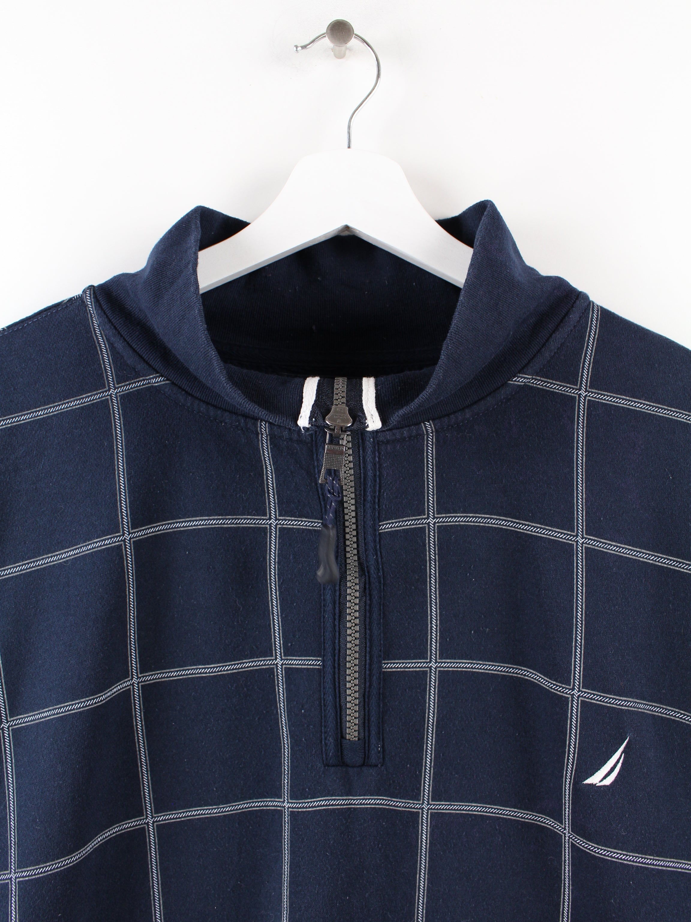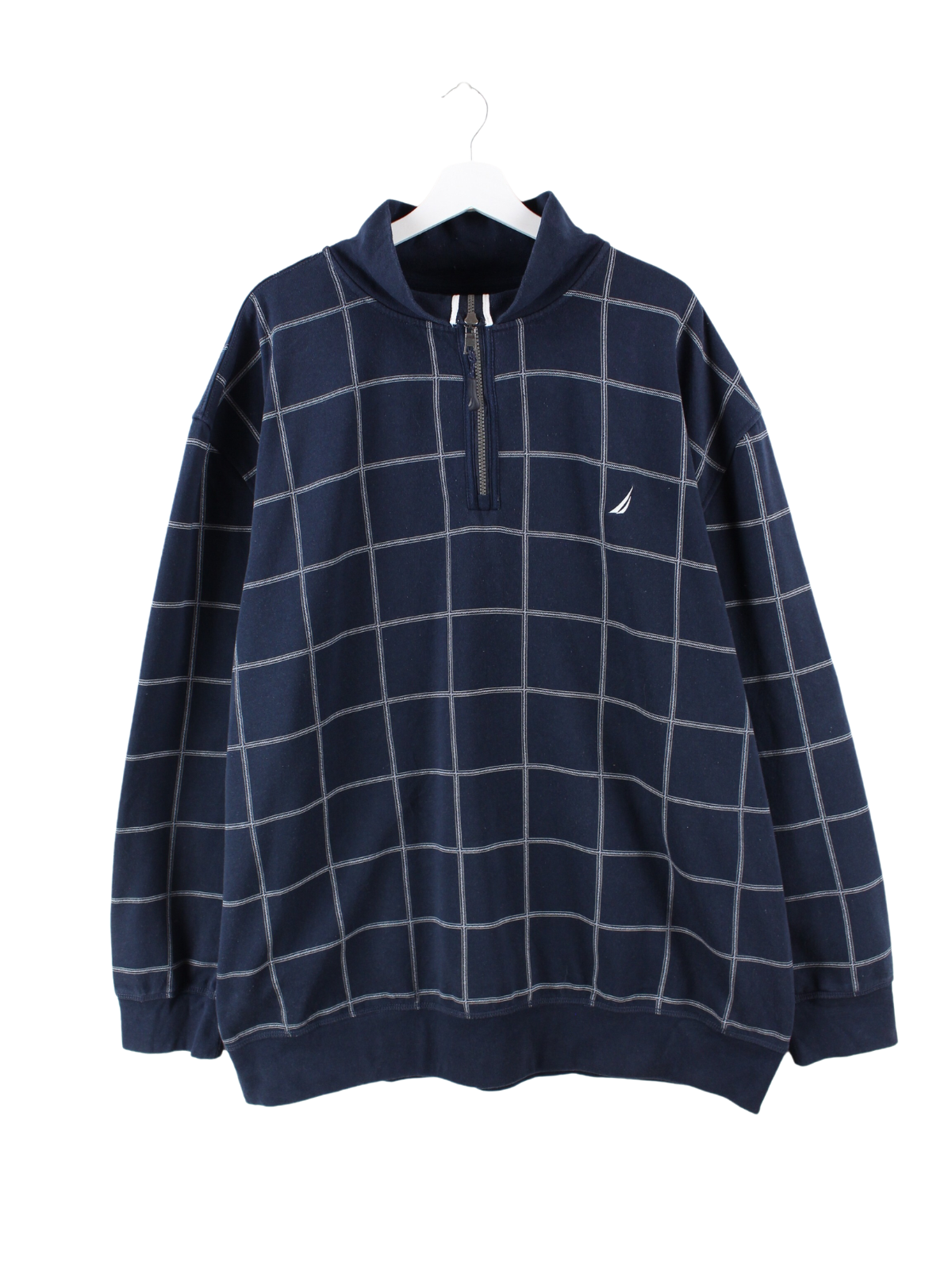 Nautica Half Zip Sweater Kariert Blau 3XL