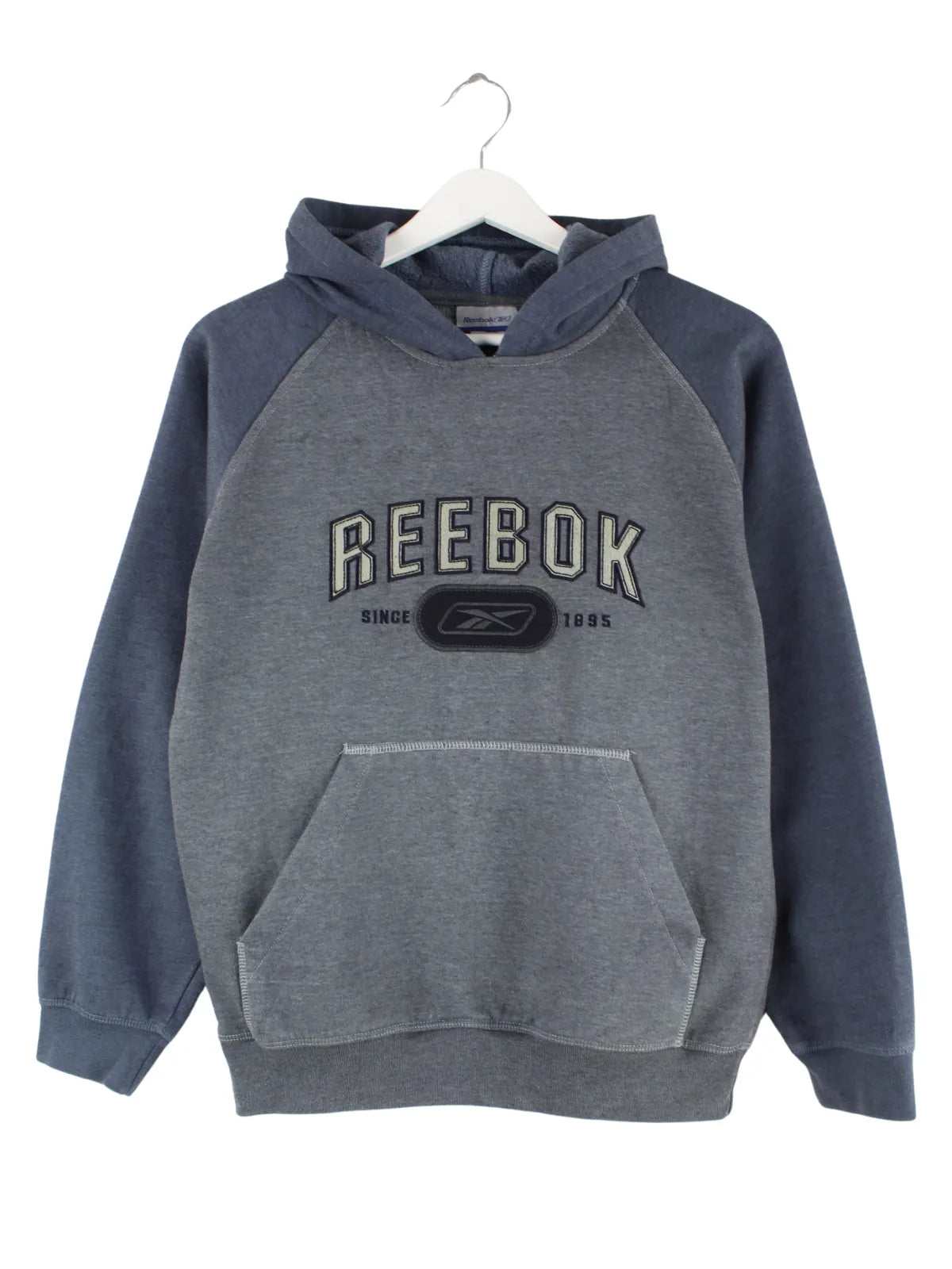 Hoodie der Brand Reebok mit gestickten Motiven in Größe S. Er ist aus einer Baumwollmischung hergestellt und in Grau zu bekommen.