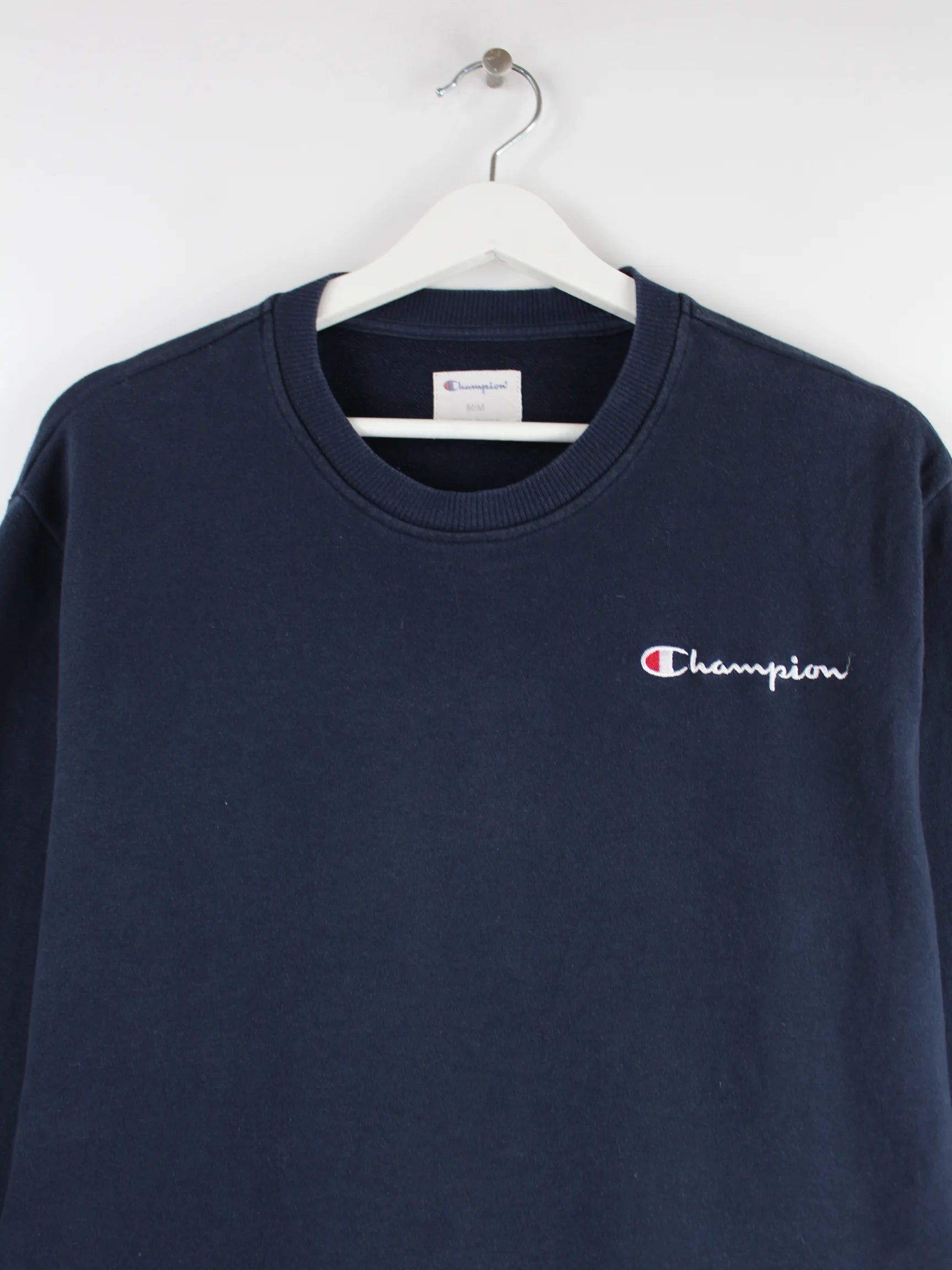 Blauer Sweater aus dem Hause Champion in Größe M. Er ist aus einer Baumwollmischung produziert und in gutem Zustand vorrätig.