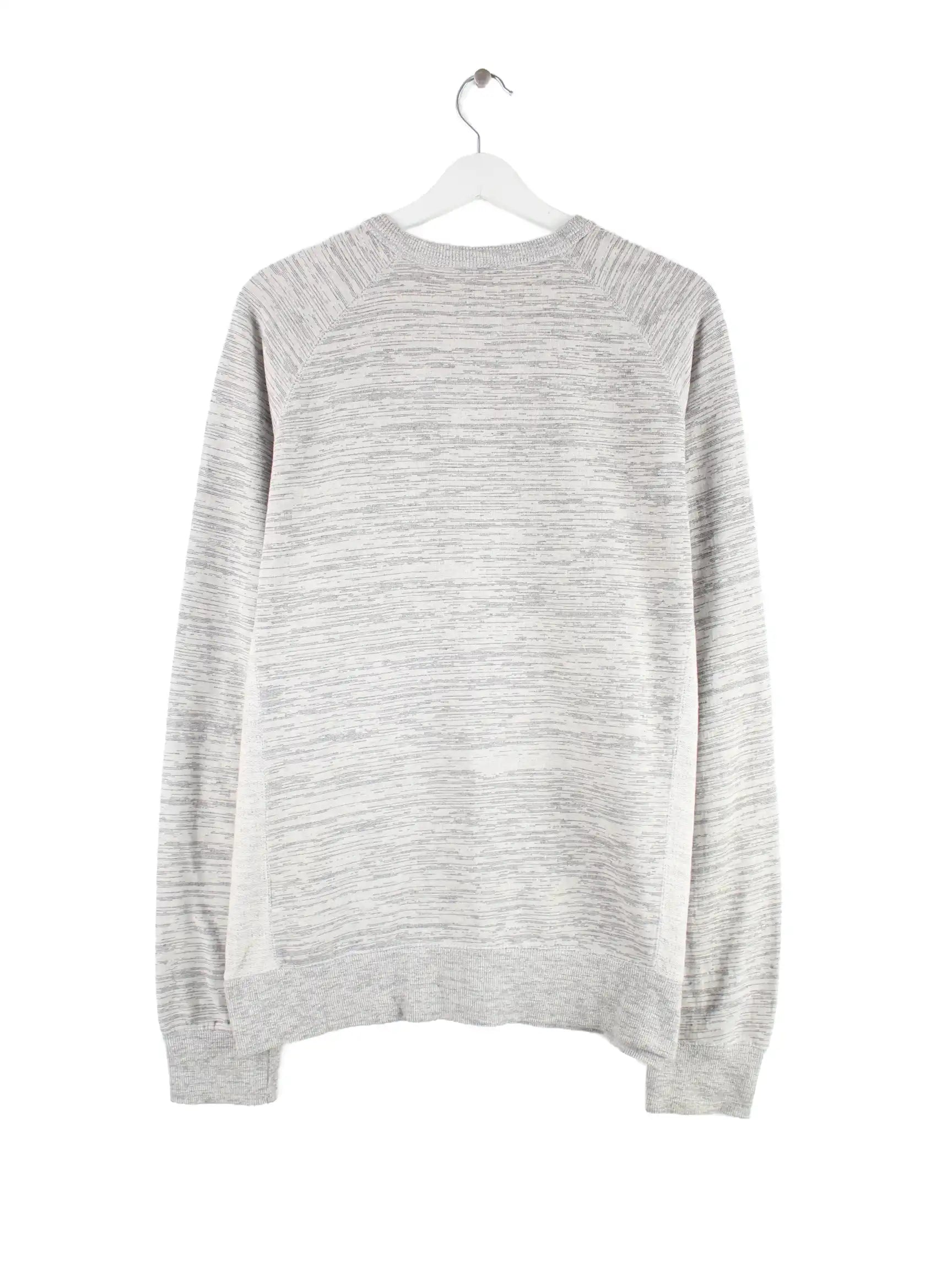 Grauer Sweater von Champion in Größe M. Er ist aus einer Baumwollmischung angefertigt und in sehr gutem Zustand bei uns vorrätig.
