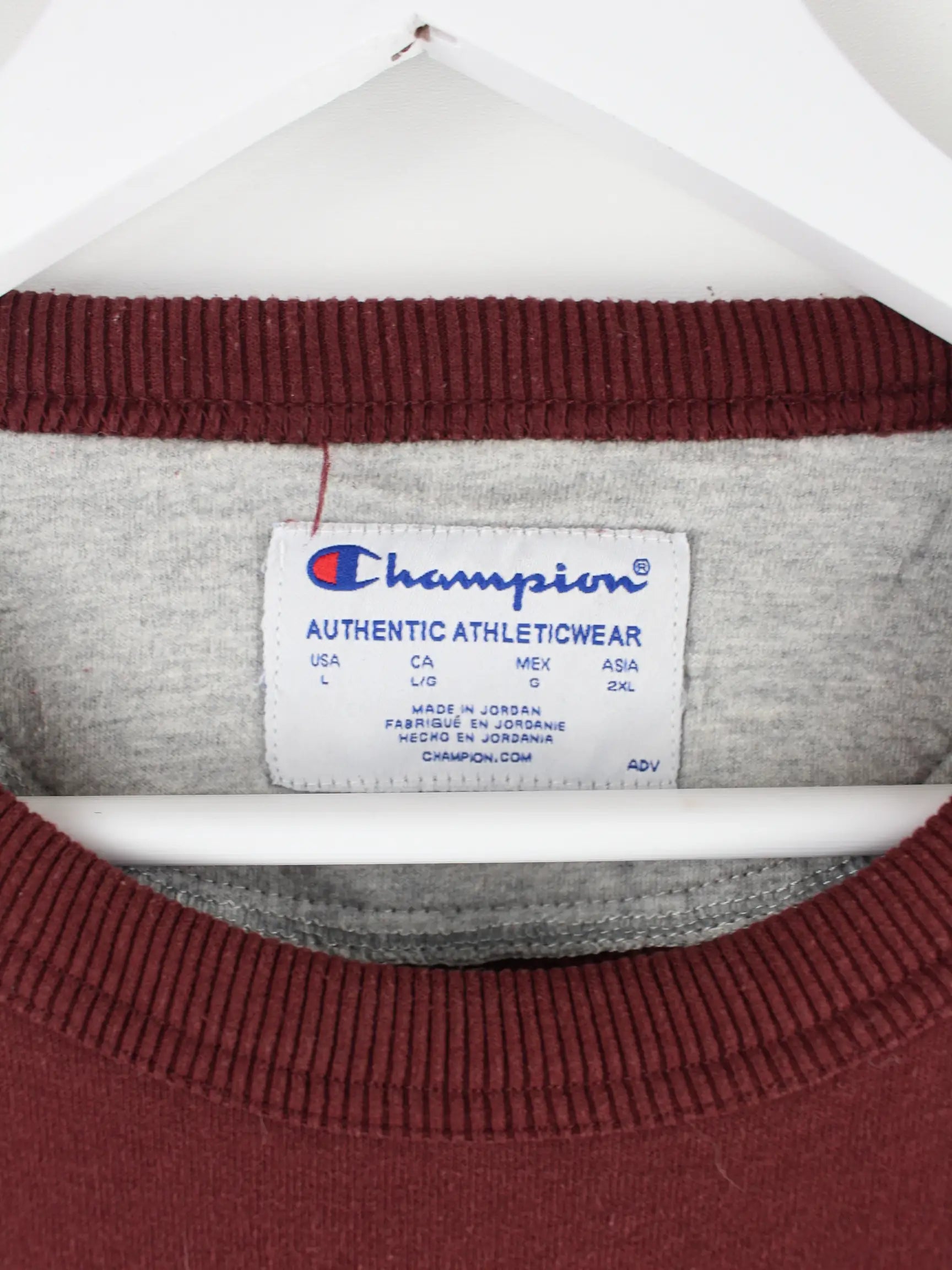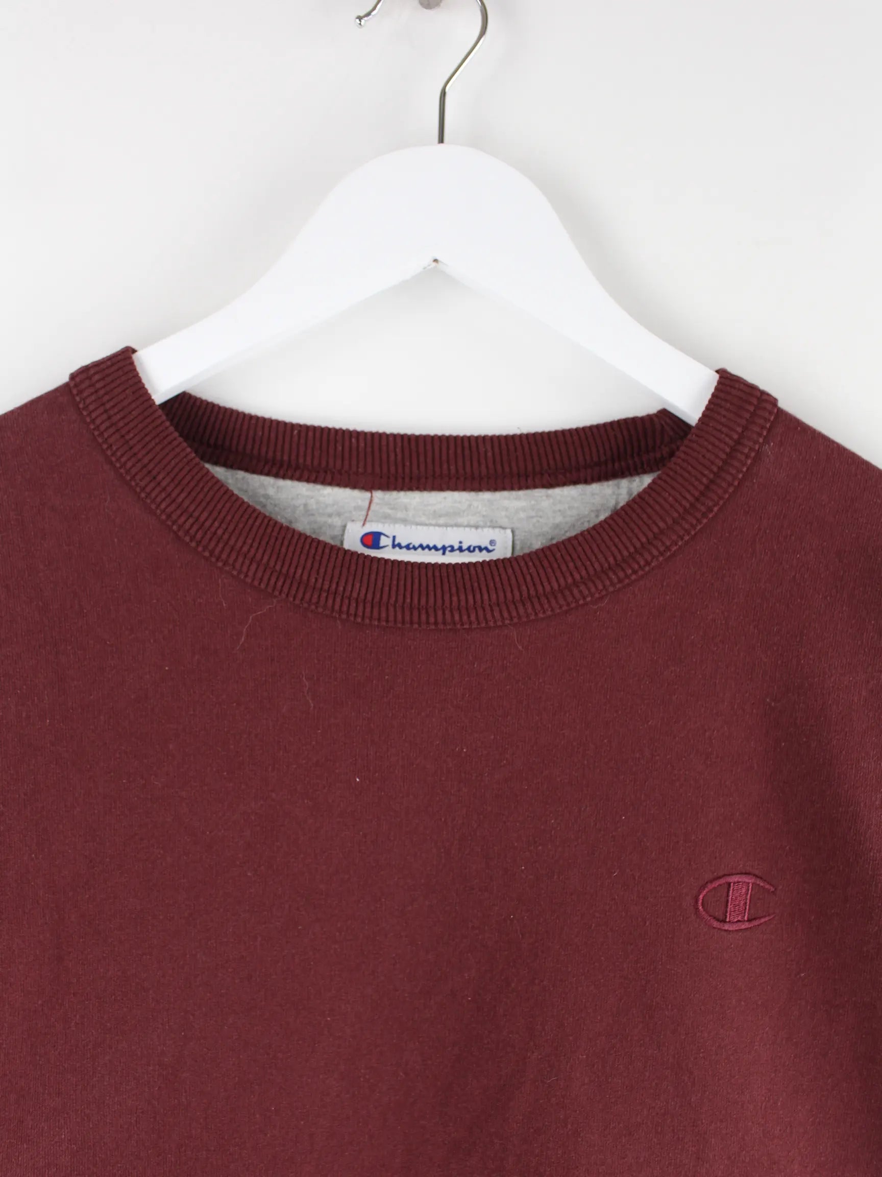 Sweater aus dem Hause Champion in Größe L. Er ist aus einer Baumwollmischung produziert und in Rot in Stock.