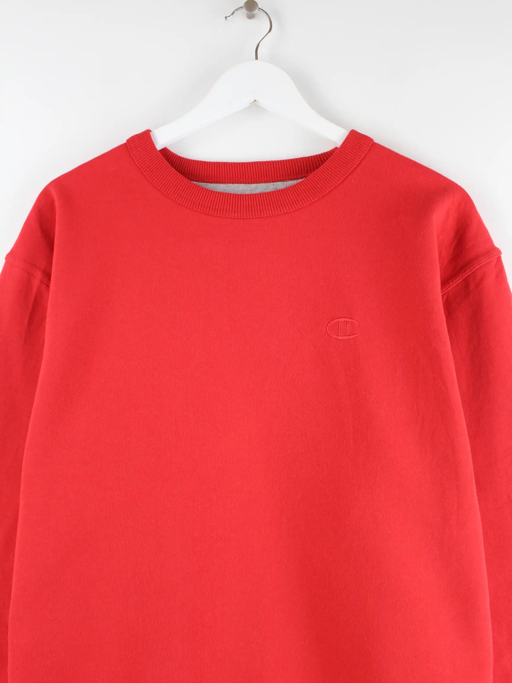 Roter Sweater von Champion in Größe M. Er ist aus einer Baumwollmischung produziert und in gutem Zustand in Stock.