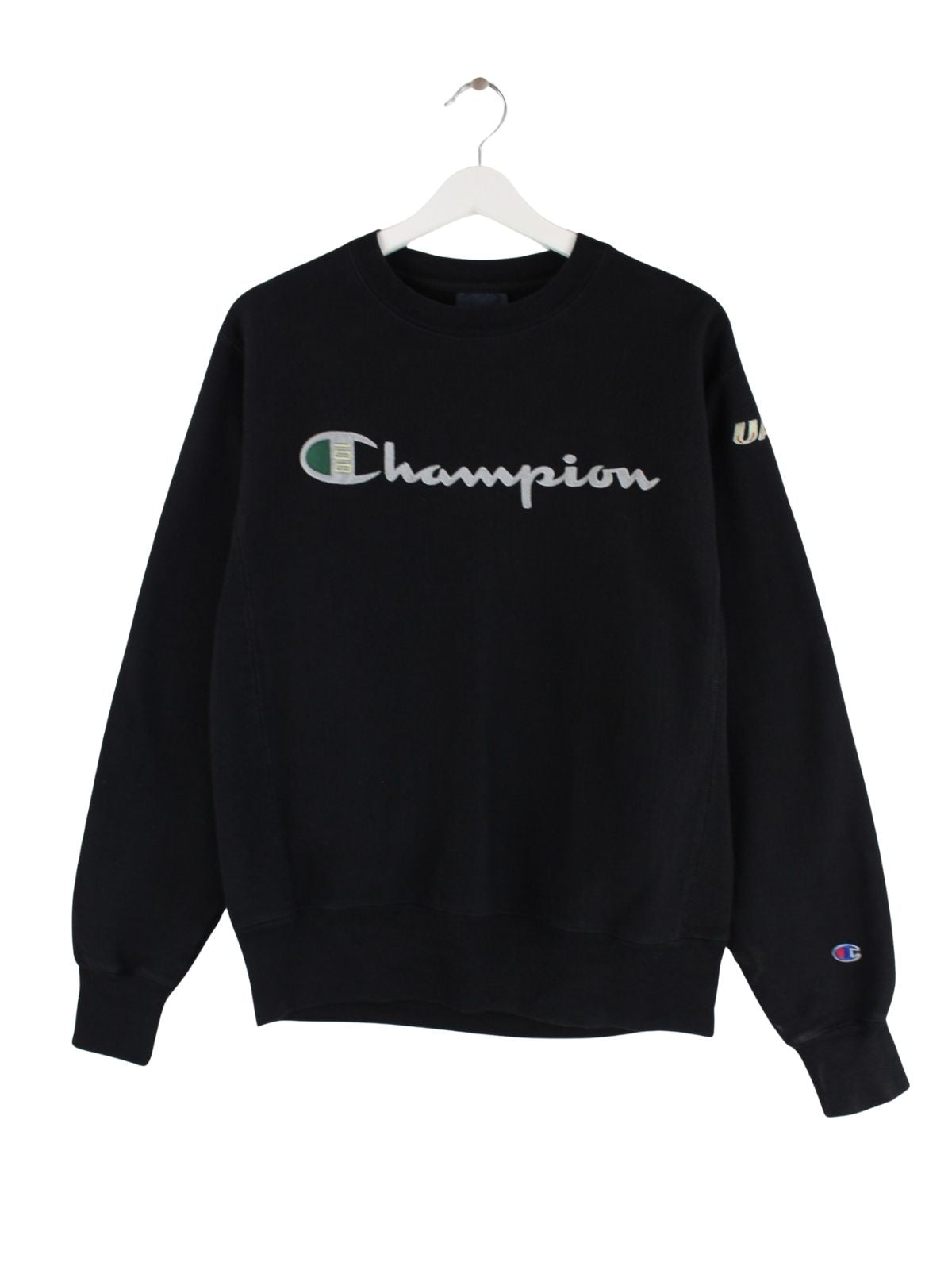 Schwarzer Sweater vom Brand Champion in Größe S. Er ist aus einer Baumwollmischung gemacht und in sehr gutem Zustand bei uns vorrätig.