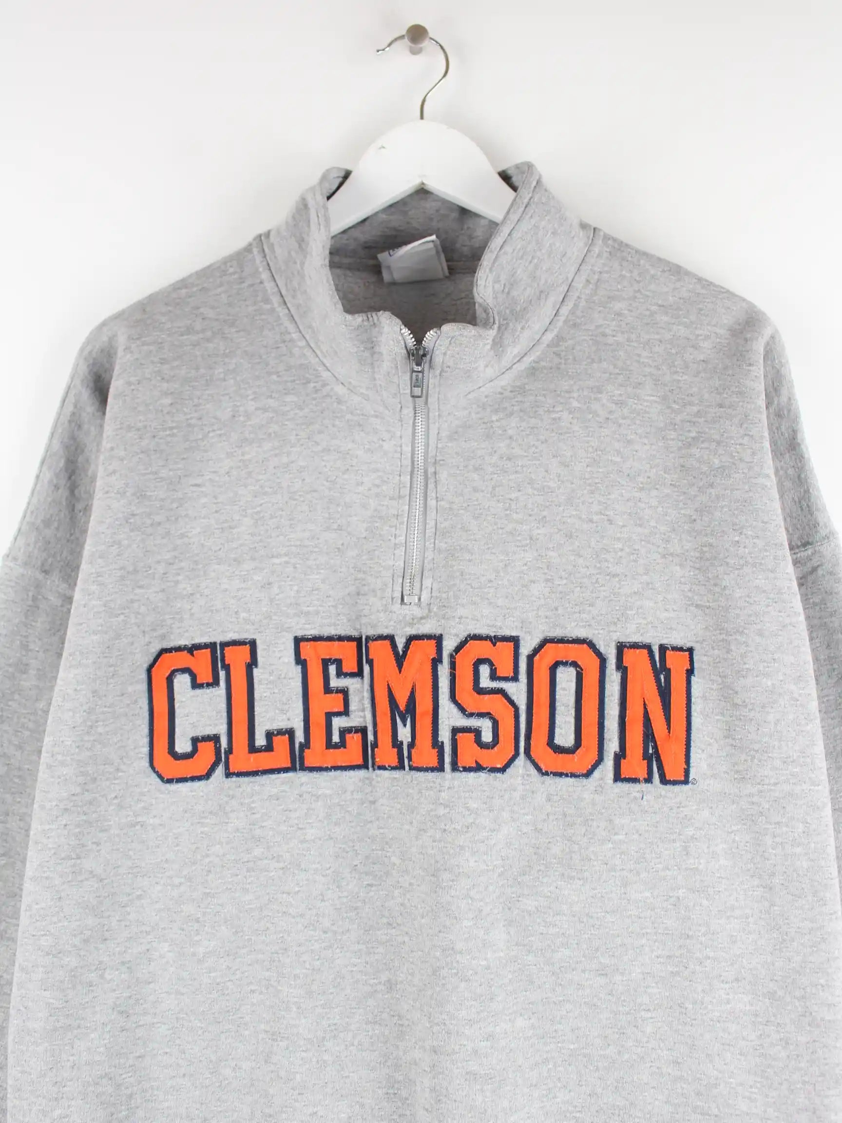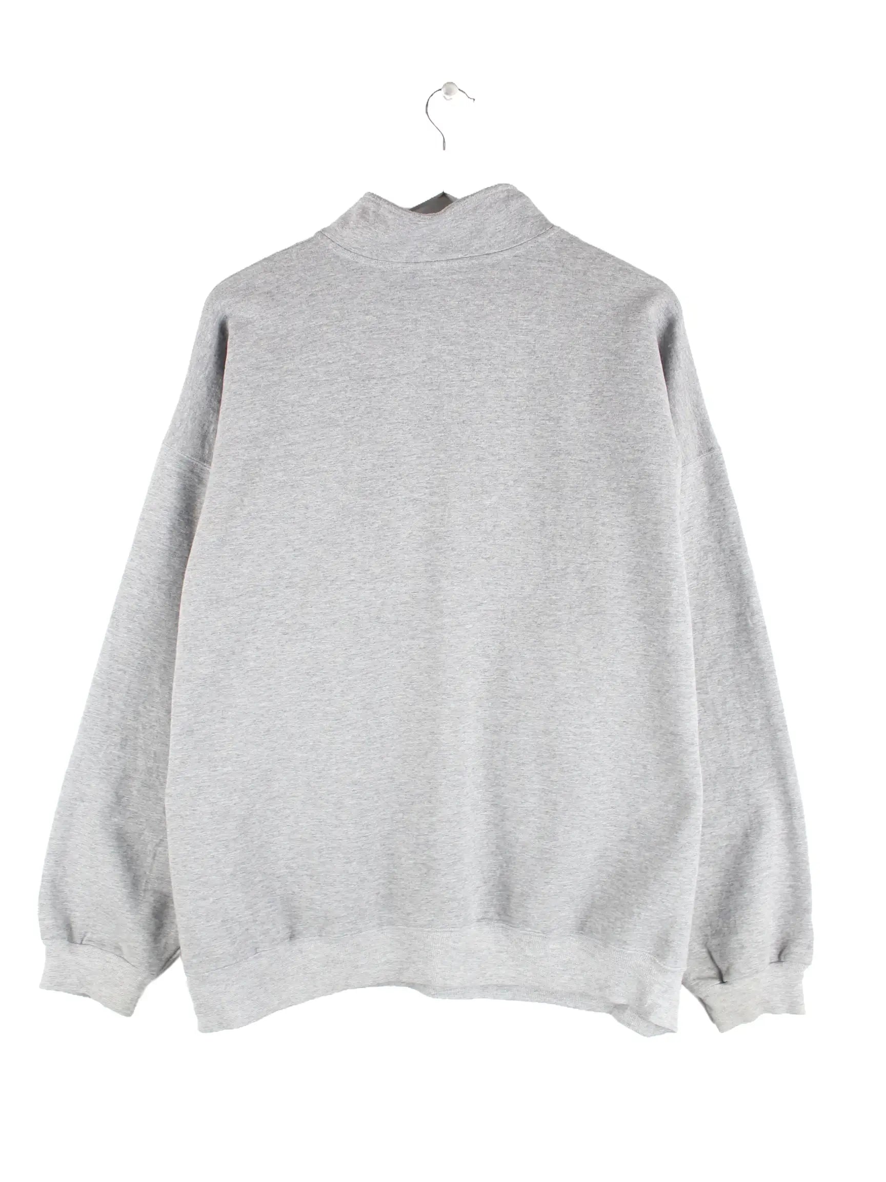 Grauer Sweater mit halbem Reißverschluß der Marke Champion in Größe XXL. Er ist aus einer Baumwollmischung produziert und in sehr gutem Zustand bei uns zu bekommen.