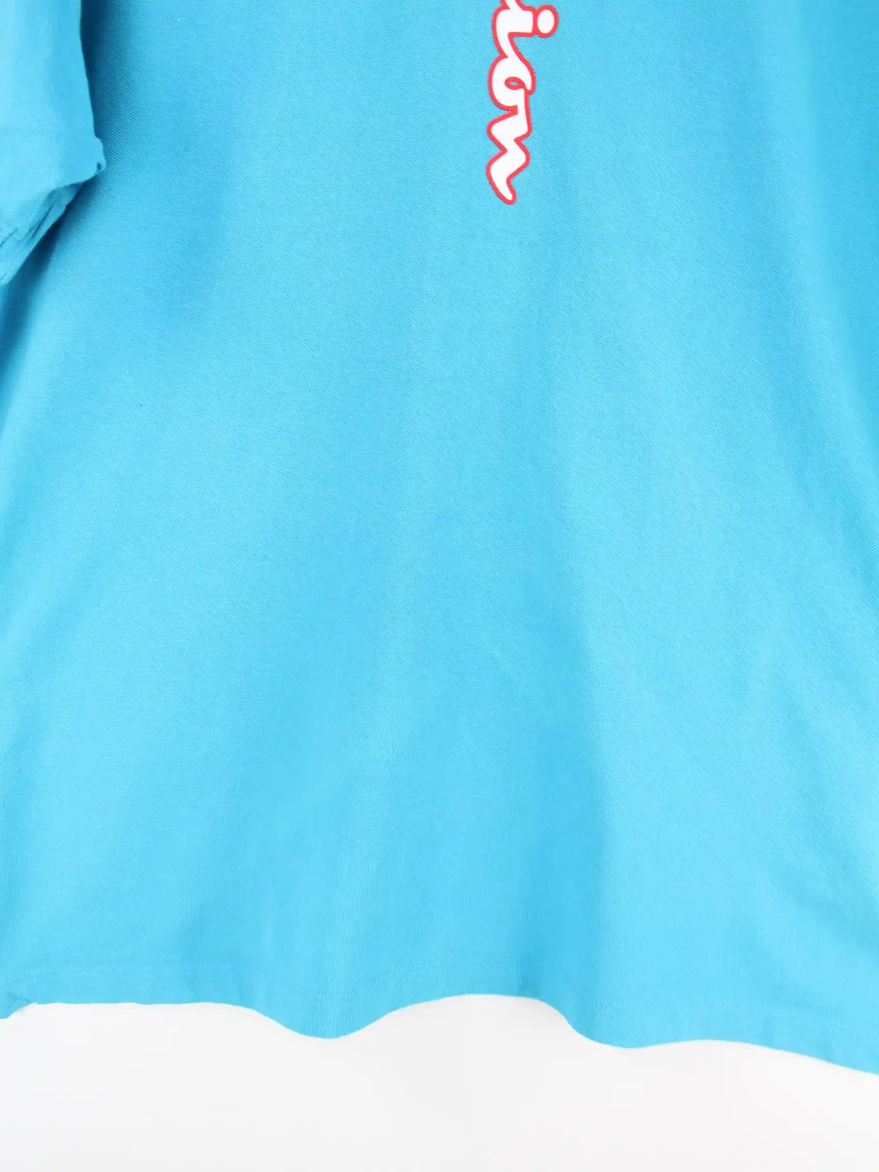 Blaues Poloshirt mit gesticktem Logo vom Brand Champion in Größe XXL. Es ist aus Baumwolle produziert. Den Zustand würden wir als 'In Ordnung' bezeichnen (vergl. Bilder).